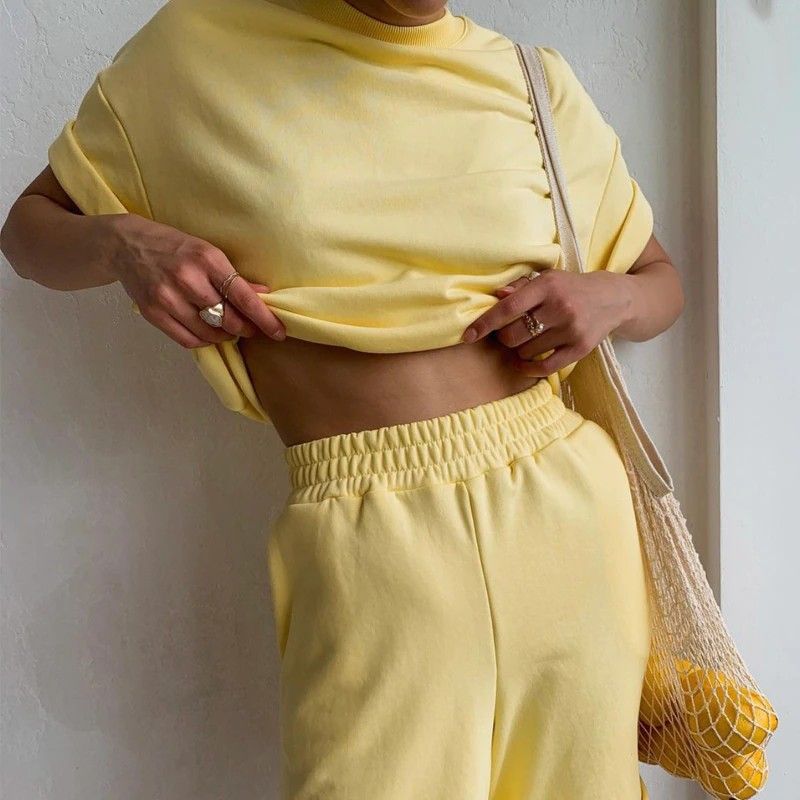 Hirsionsan Zomer Katoen Sets Vrouwen Casual Twee Stukken Korte Mouwen T-Shirts En Hoge Taille Korte Broek Solid Outfits Trainingspak