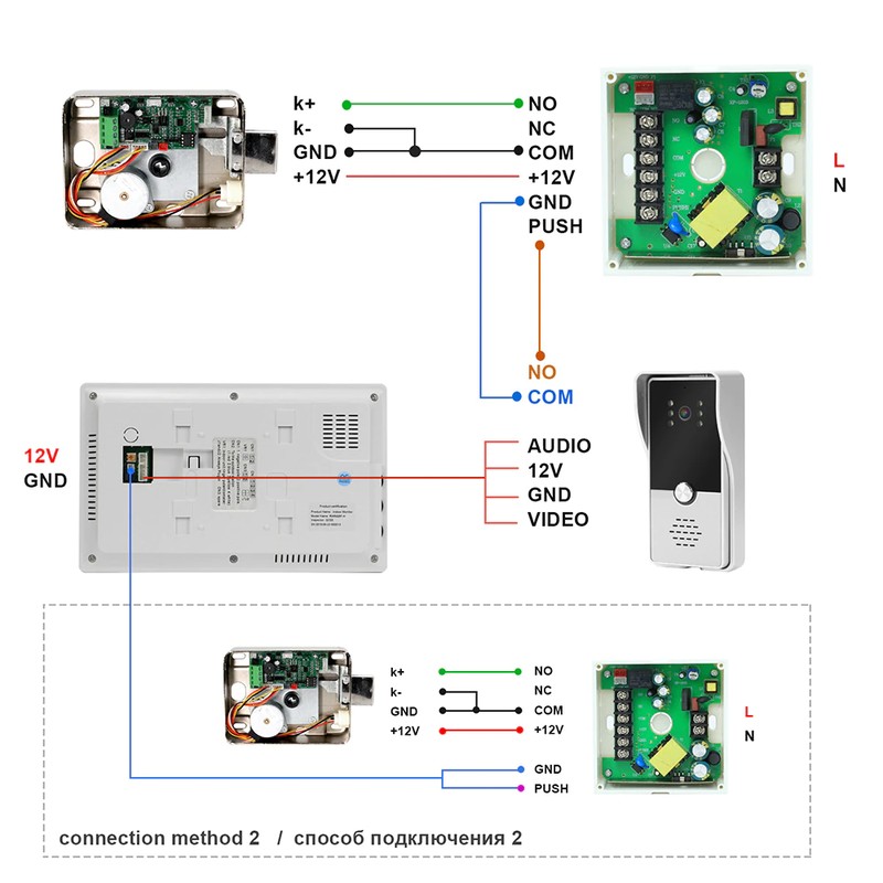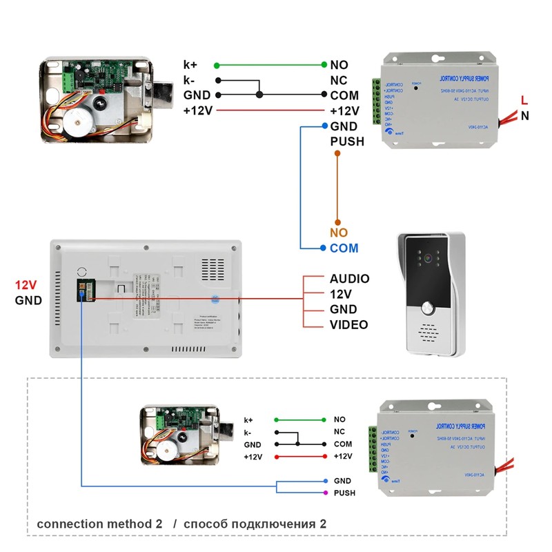 1. ondersteunt open 2 elektronische sloten, deurbel aansluiten op slot 1 , monitor aansluiten op slot 2
