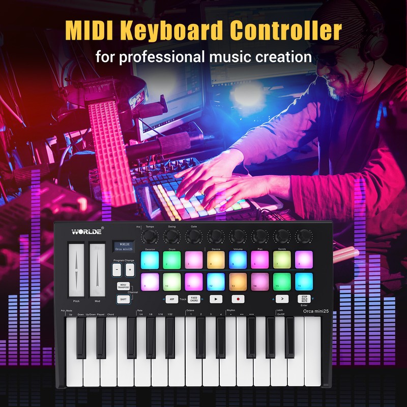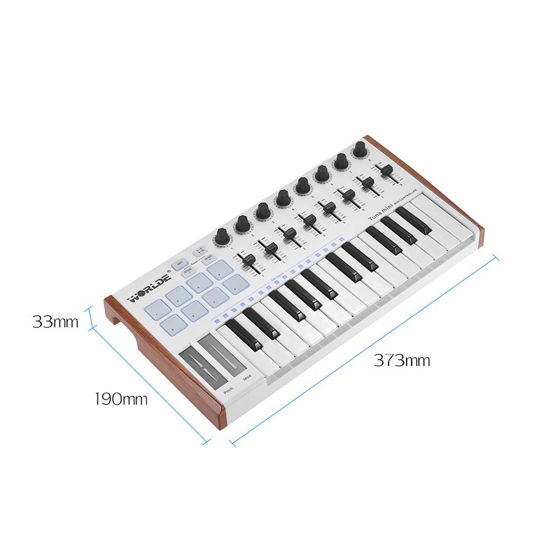 25 velocity gevoelige mini-toetsen, met 3 velocity curve en 1 constante snelheid; 4 toewijsbare draaiknoppen en 4 toewijsbare sliders, elk kan worden bewerkt door gebruikers.