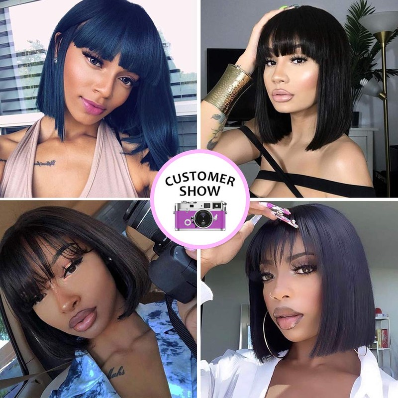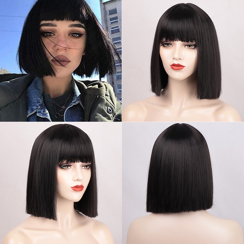 Ik Een Pruik Korte Rechte Zwarte Pruik Met Pony Synthetische Bob Pruiken Voor Vrouwen Roze Rood Paars Bruin Cosplay Haar Voor Party Dagelijks