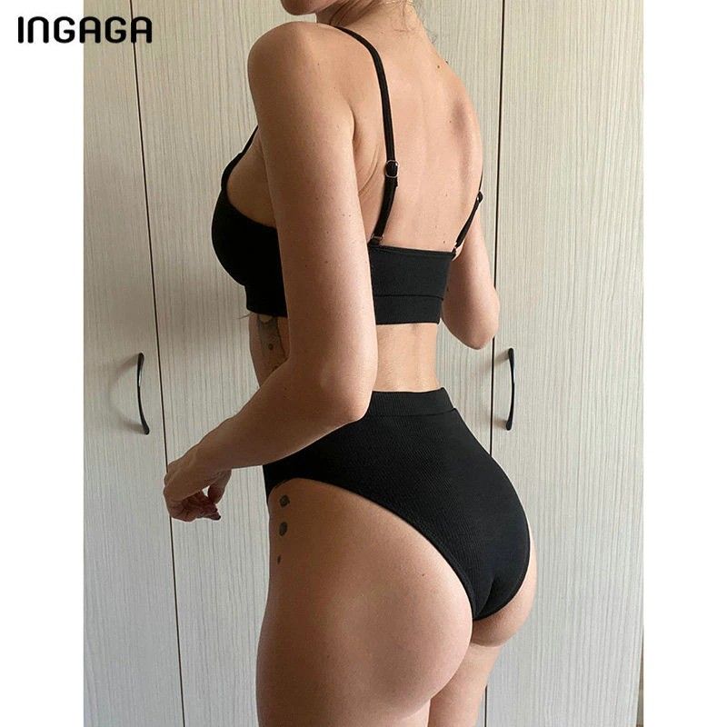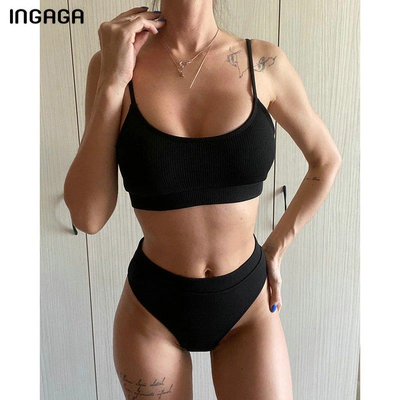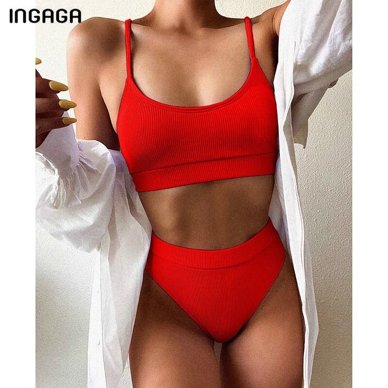 Ingaga Hoge Taille Bikini Badpakken Vrouwen Push Up Badmode Geribbelde Band Badpak Biquini Braziliaanse Bikini Nieuwste Nieuwe Beachwear