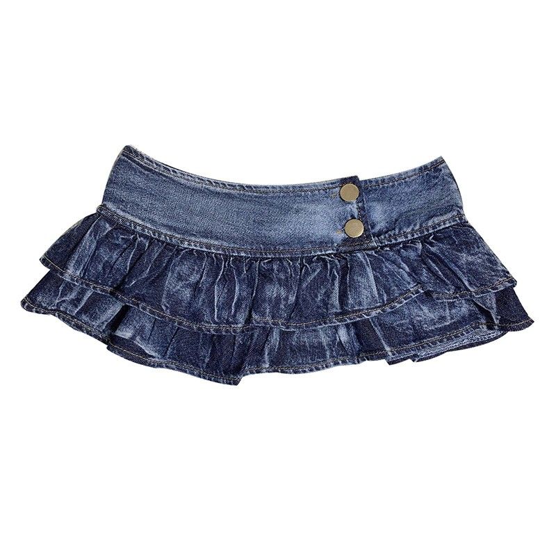 Japanse Meisje Geplooide Super Mini Denim Rokken Lage Taille Een Lijn Knop Rok Effen Nacht Club Party Wear Rok Punk Stijl Lolita Nieuwe
