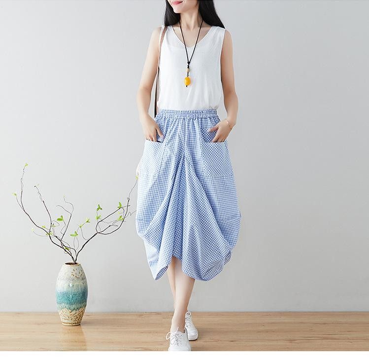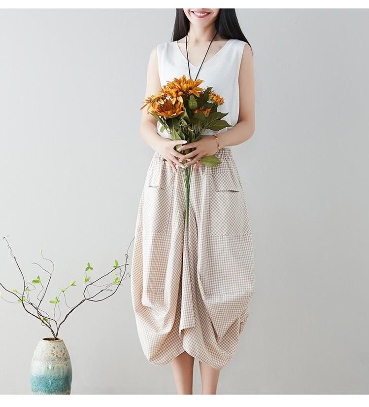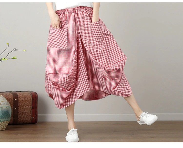 Johnature Nieuwste Nieuwe Zomer Rokken Casual Plaid Knop Zakken Veelkleurig Plooirok knielengte Natuurlijke Comfortabele Vrouwen Rok