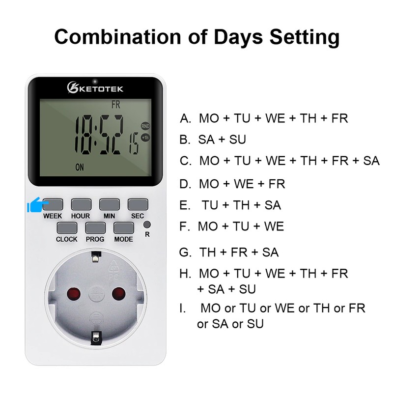 Ketotek Elektronische Digitale Timer Schakelaar Eu Fr Br Plug Keuken Timer Outlet 230V 50Hz 7 Dag 12/24 Uur Programmeerbare Timing Socket