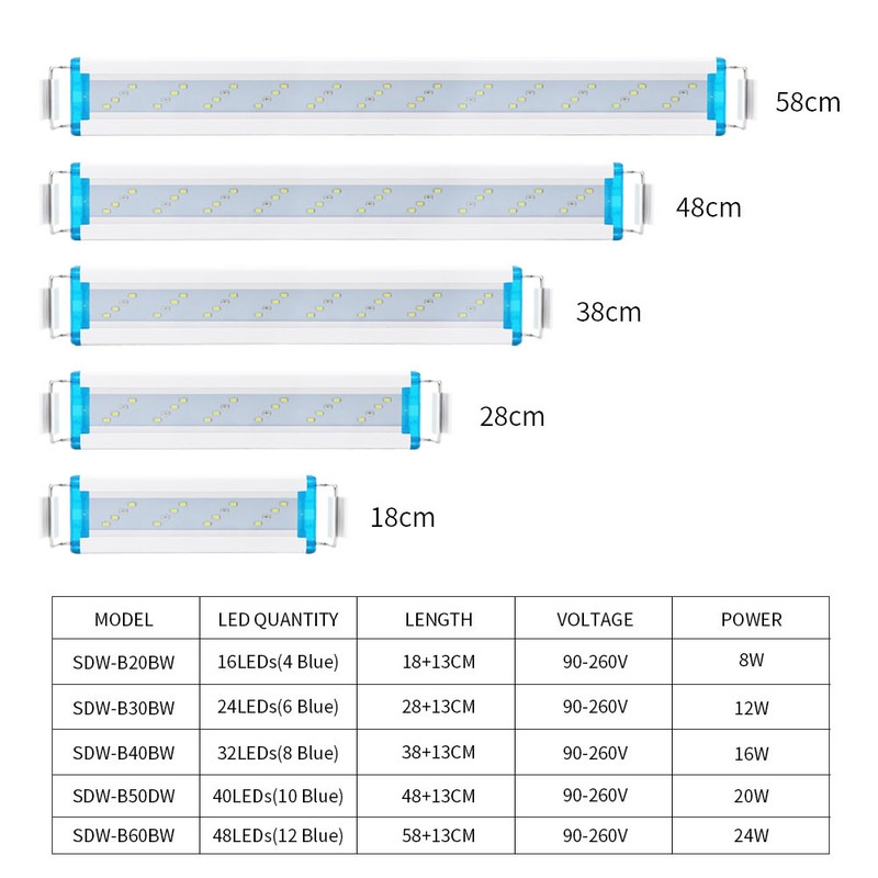 Aquarium Led Licht Super Slim Fish Tank Aquatic Plant Groeien Verlichting Waterdichte Bright Clip Lamp Blauwe Led 18-58Cm Voor Fish Tank