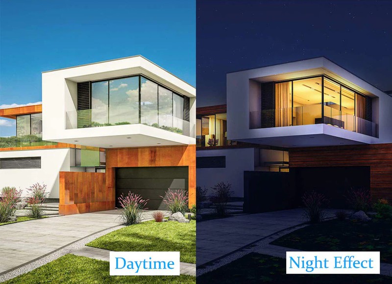 De buiten glas zal een spiegel effect evenals uw privacy alleen overdag, en je kan zien buiten van binnen. Wanneer avond indoor licht is sterker, dan de glas buiten zal verliezen spiegel effect evenals buiten mensen kunnen zien binnen, dus vergeet niet om trekken shades indien nodig.