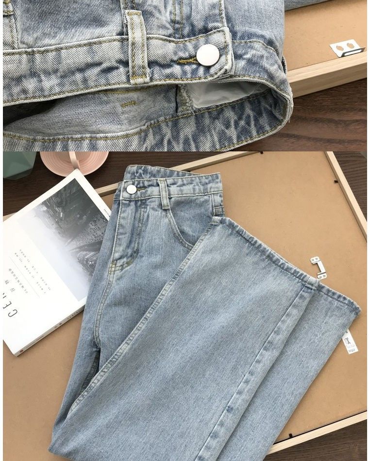 Lichtblauw Denim Broek Vintage Wijde Pijpen Broek Vrouwen Koreaanse Rechte Lange Broek Hoge Taille Toevallige Losse Met Riem Laatste Herfst