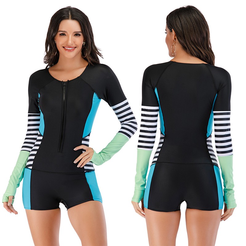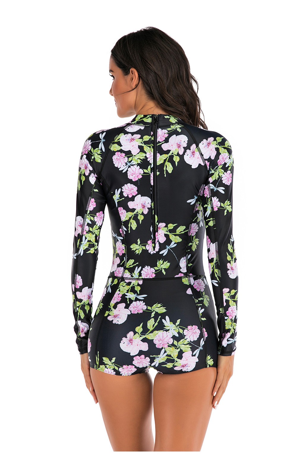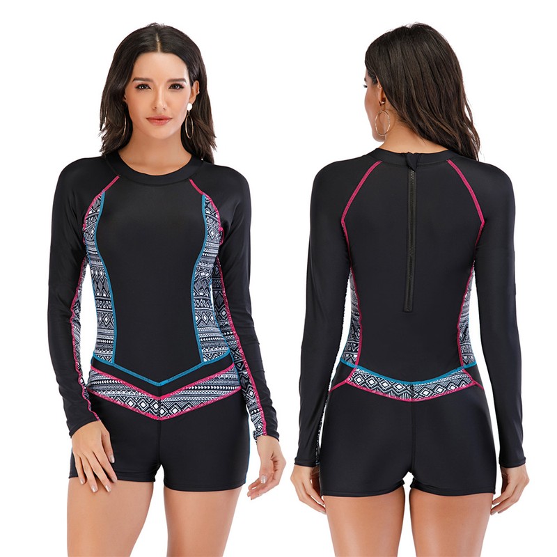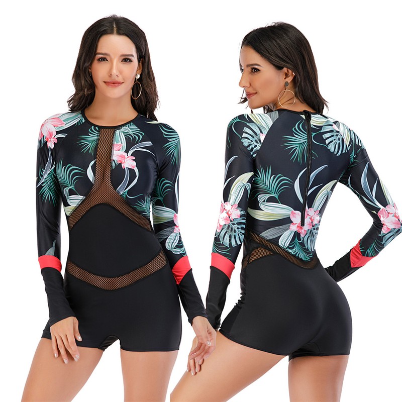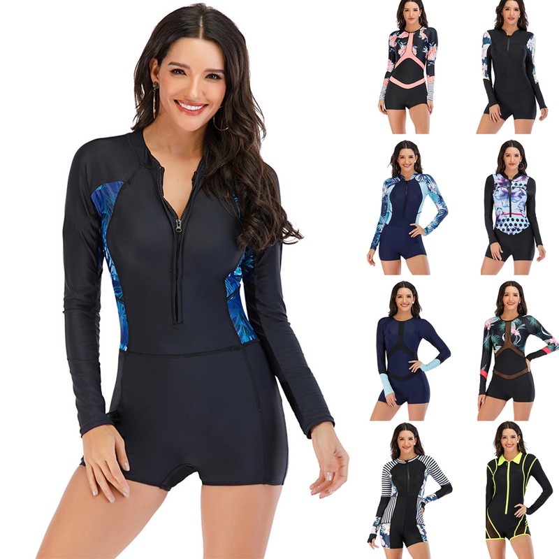 Lange Mouwen Rash Guard Vrouwen Print Badmode Shorts Slipje Een Stuk Badpak Rits Surfen Pak Pad Badpakken Uv Beschermen