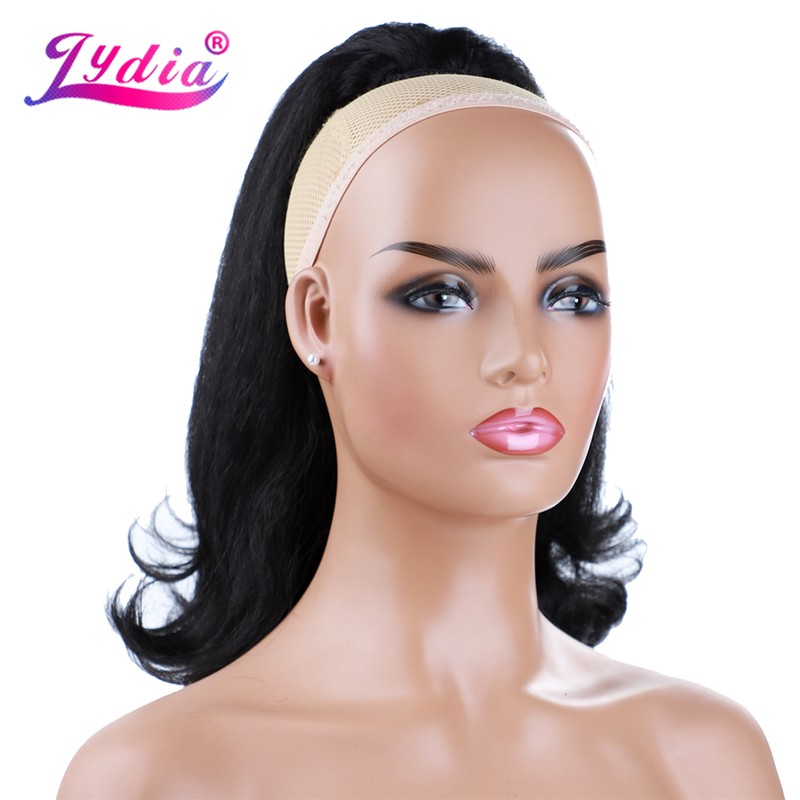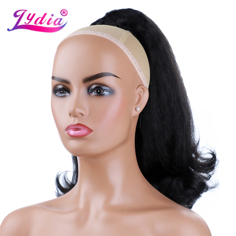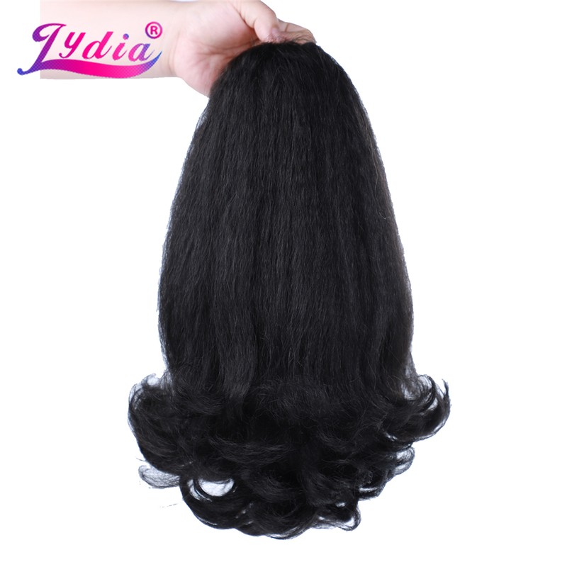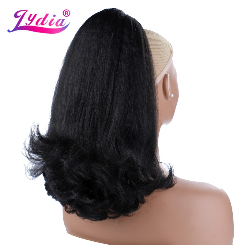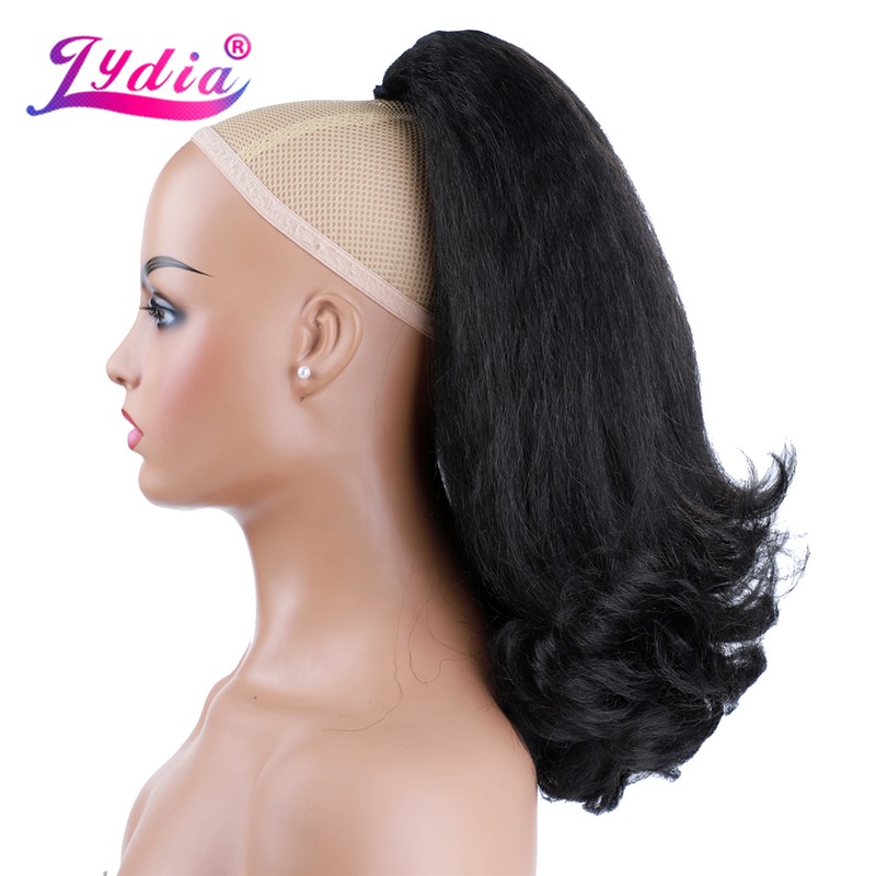 Lydia Staart Kromtrekken Synthetische 16 "Kinky Straight Haarstukje Met Twee Plastic Kam Trekkoord Paardenstaart Haarverlenging Natuurlijke Zwart Met krullend Staart