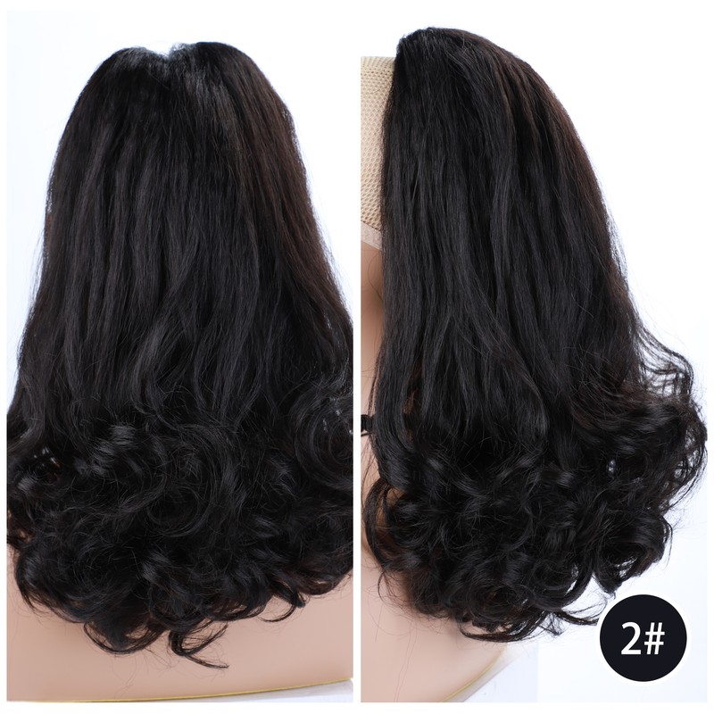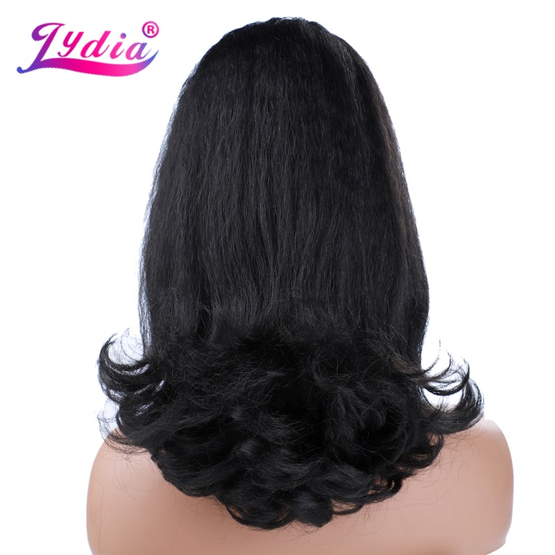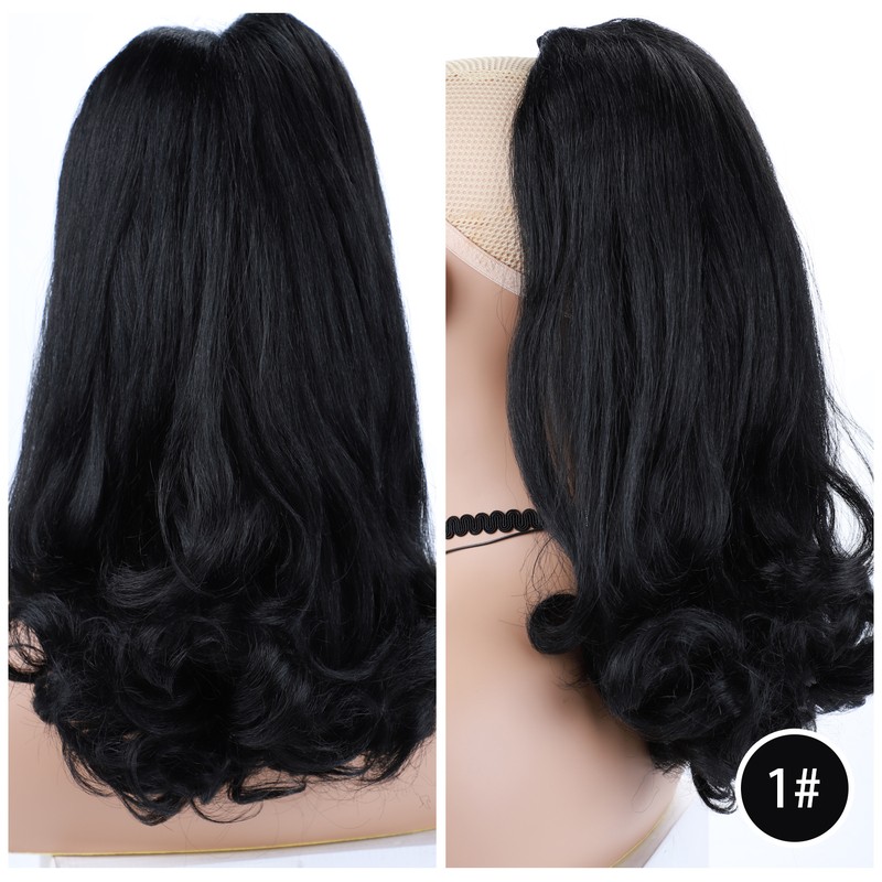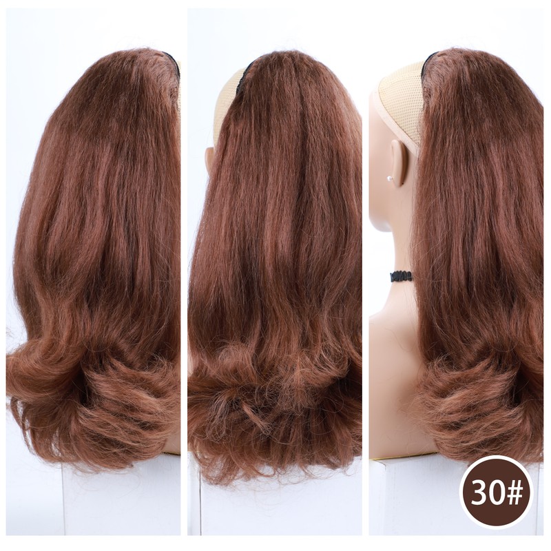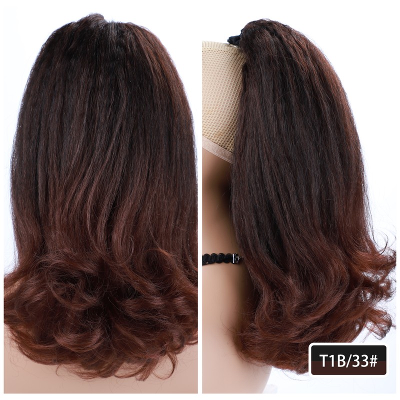 Lydia Staart Kromtrekken Synthetische 16 "Kinky Straight Haarstukje Met Twee Plastic Kam Trekkoord Paardenstaart Haarverlenging Natuurlijke Zwart Met krullend Staart