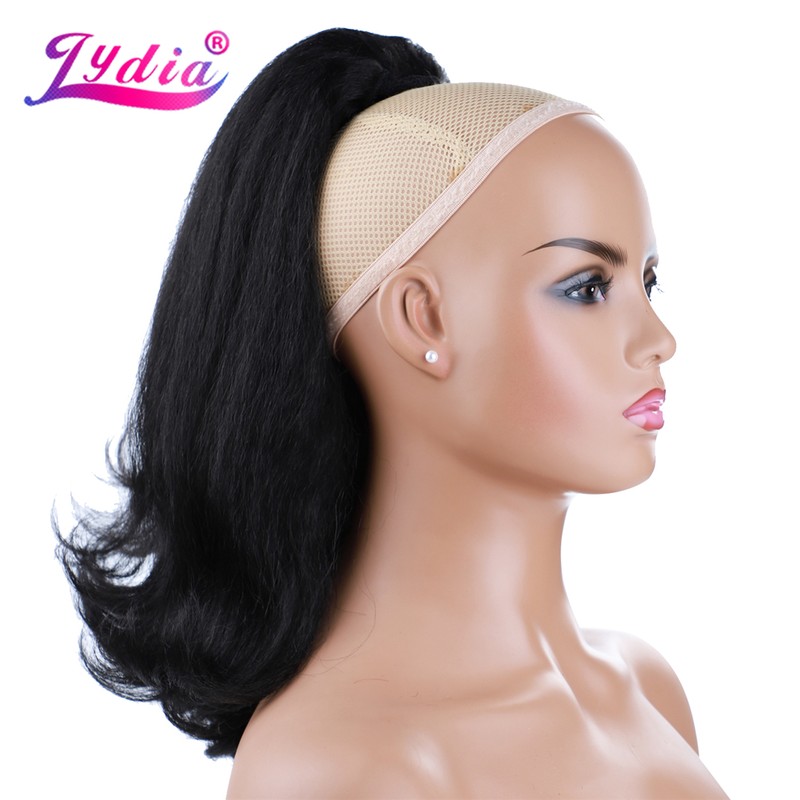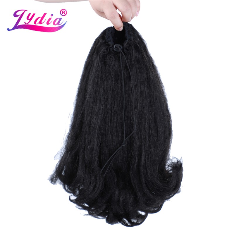 Lydia Staart Kromtrekken Synthetische 16 &Quot;Kinky Straight Haarstukje Met Twee Plastic Kam Trekkoord Paardenstaart Haarverlenging Natuurlijke Zwarte