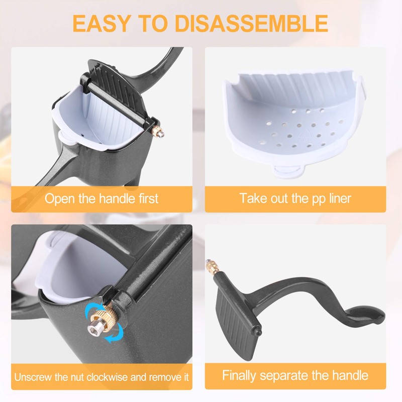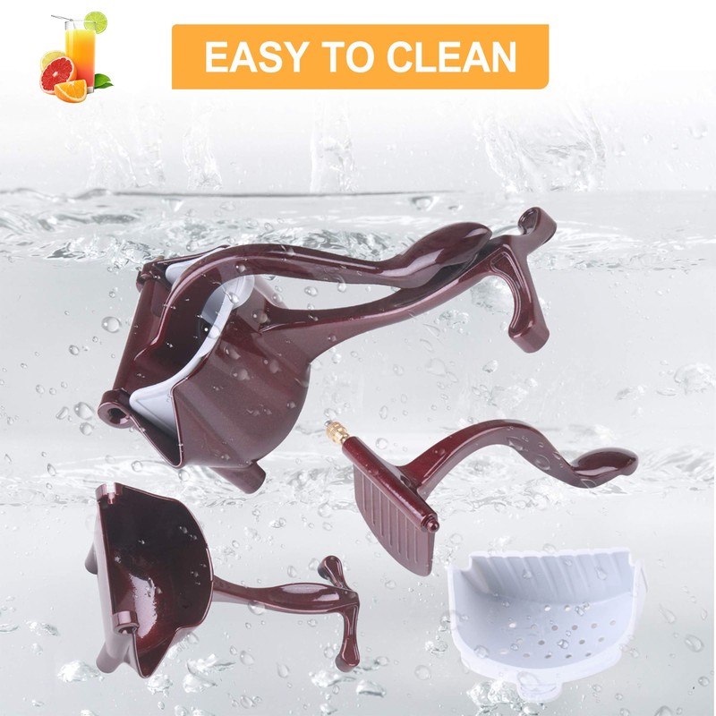 De glad handvat ontwerp van de fruit juicer biedt een comfortabele en stabiele grip, gemakkelijk te grip en comprimeren. De duurzame legering body van de handpers fruitpers bespaart uw handen met geen inspanning, en de voet ontwerp maakt de juicer knijper kan op de tafel eenvoudig en stabiel zonder uitglijden.