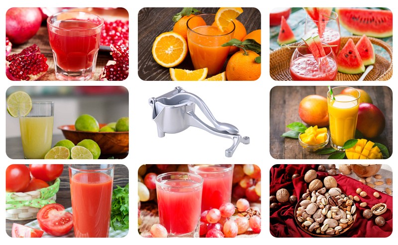 De handmatige fruitpers juicer bevat een hoge sap uitmalingspercentage, kan het niet alleen squeeze watermeloen, orange, citroen, citrus, granaatappel, en andere vruchten maar ook groente sap, zoals tomaten en komkommers. U kunt dit ook multifunctionele handmatige juicer op noten, zoals walnoten.