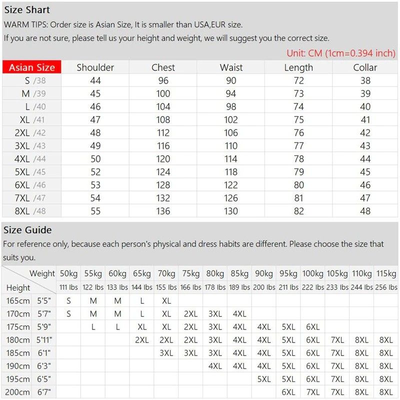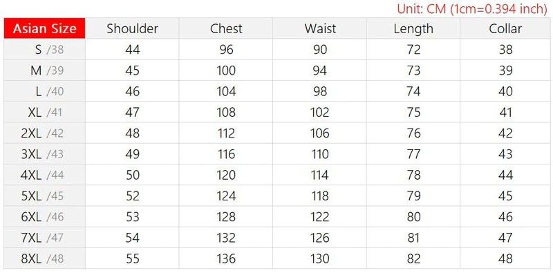 Aziatische maat: S, M, L, XL, XXL, XXXL, 4XL, 5XL, 6XL, 7XL, 8XL