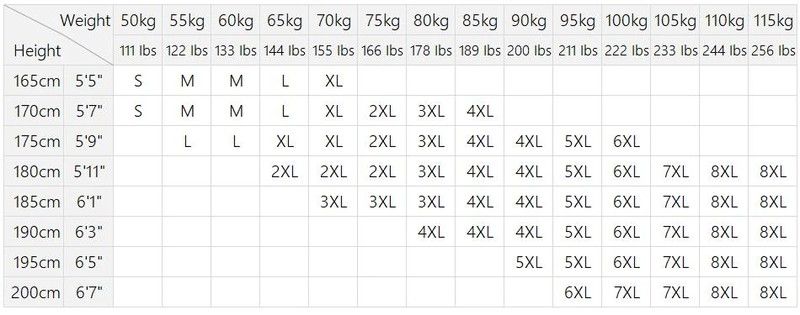 Als u niet zeker, vertel ons uw lengte en gewicht, wij suggereren u de juiste maat.