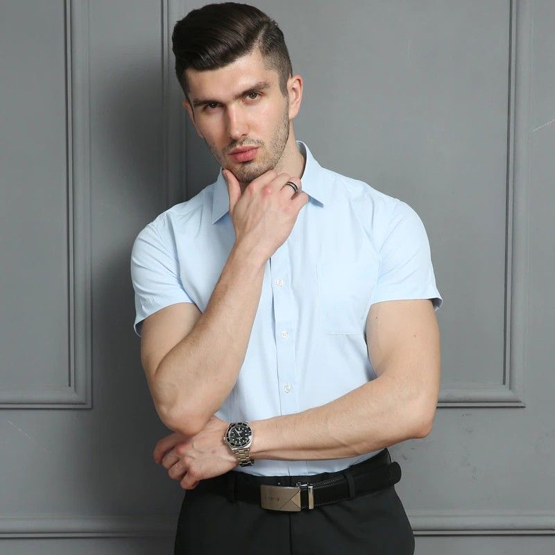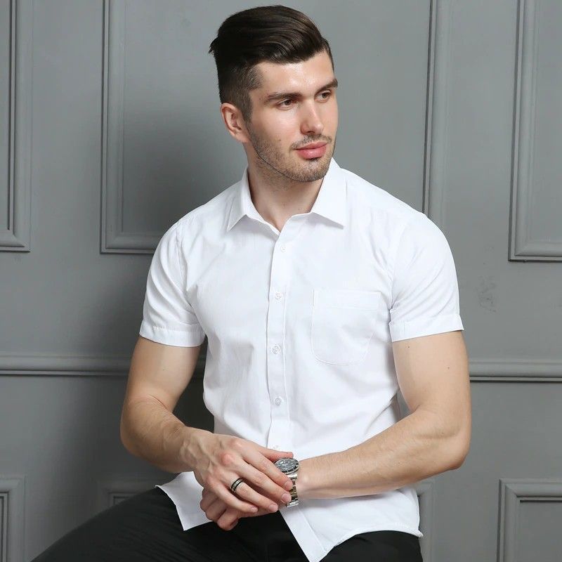 Mannen Casual Jurk Korte Mouwen Zomer Wit Blauw Roze Zwart Mannelijke Regular Fit Shirt Mannen Sociale Shirts 4Xl 5Xl 6Xl 7Xl 8Xl