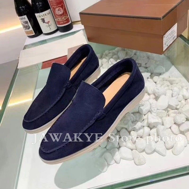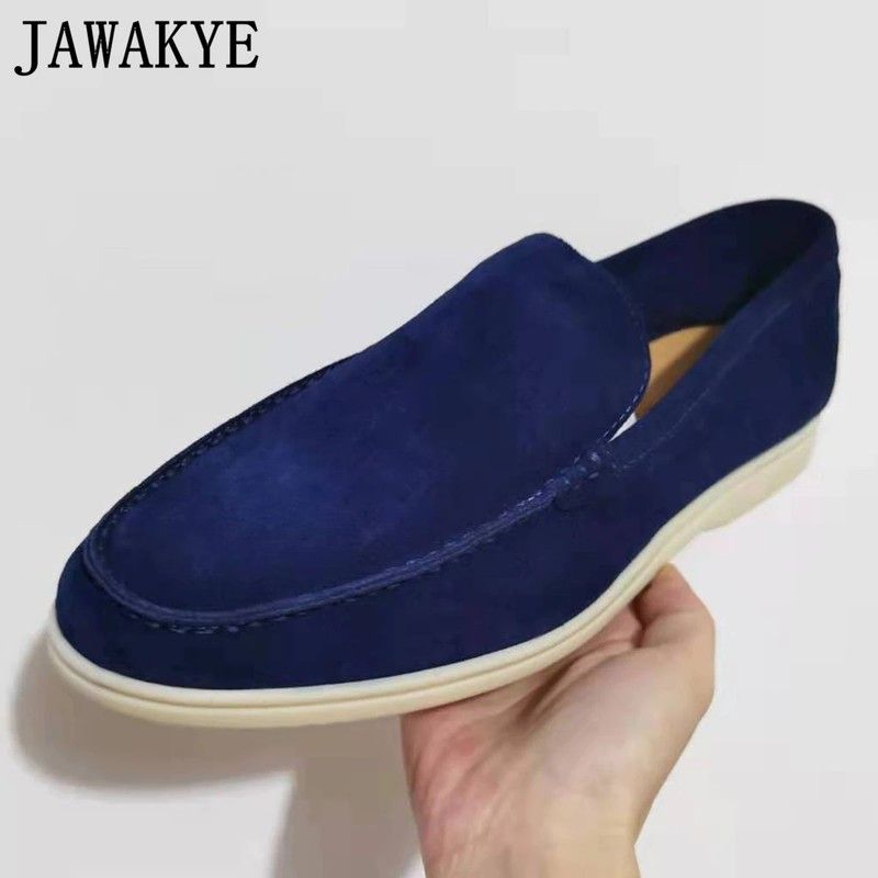 Mannen Kidsuede Lederen Loafers Comfortabele Business Schoenen Voor Mannen Koningsblauw Heren Rijden Schoenen Platte Hak Rubberen Zool Schoenen