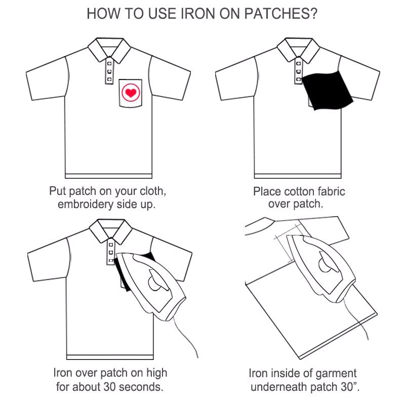 Maat: als beeld Dan ijzer op uw kleding met ijzeren als er lijm op de achterkant En zet een stuk katoenen doek op de goederen te beschermen het Ook u kunt naaien een paar eenvoudige steken na de strijken als je kunt, het maakt meer stevig en duurzaam Als er don 'hebben lijm, dan naaien op uw kleding. IK geloof dat dit is niet moeilijk voor smart van u.