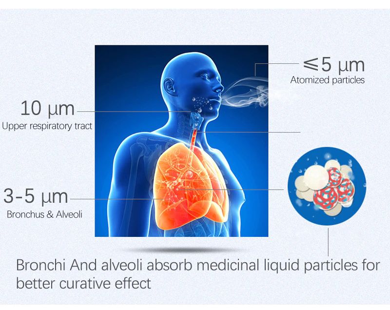 De verstoven deeltjes zijn 3-5μm, en de drug deeltjes kan worden ingeademd in de bronchiën en longblaasjes om een goede therapeutische effect