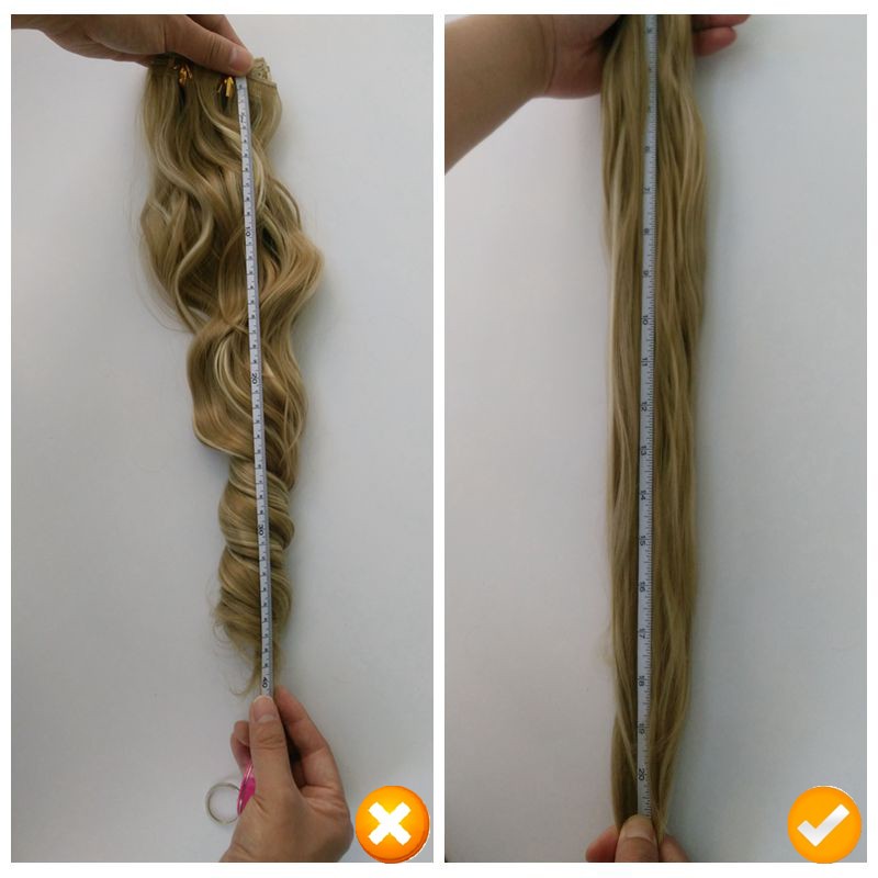 We meten de lengte van het haar bij het haar worden uitgerekt tot recht, de golvend en krul textuur haar zal veel korter