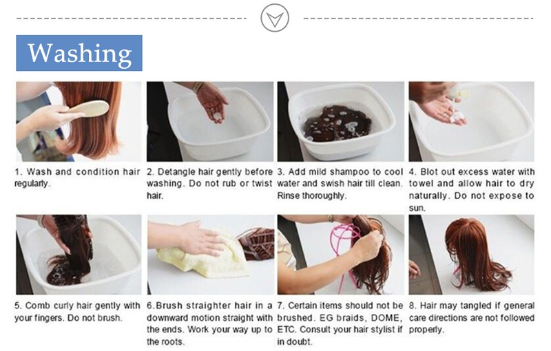 8, voor golvend pruik, houd de cap hand, schudden het 5- 6 keer, run met vingers glad zachtjes.