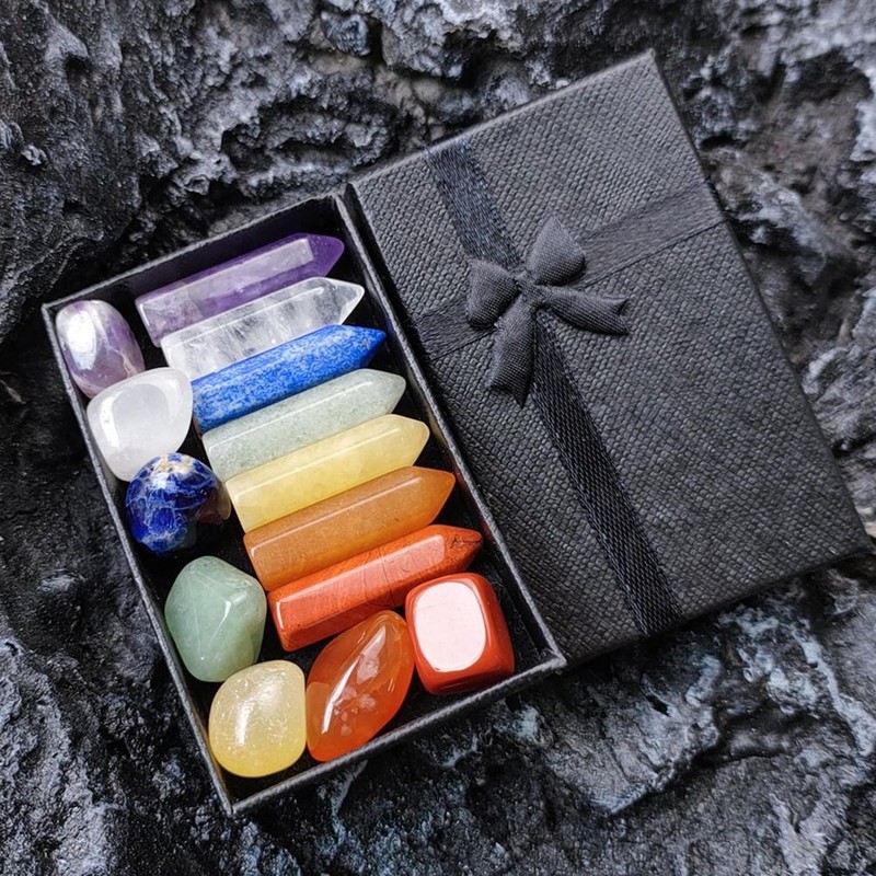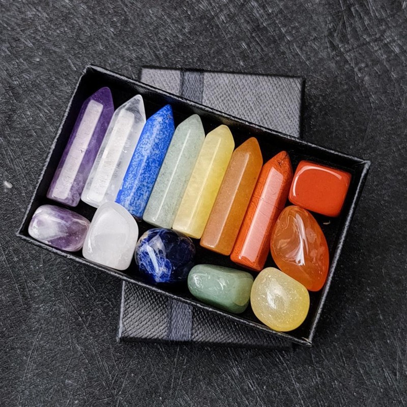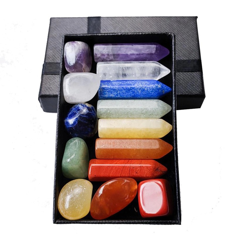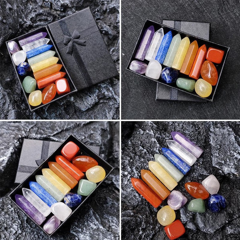 Het product bevat: Zeven Chakra Zeshoekige Kolom Energie Steen Combinatie Set * 1 1 doos van 14