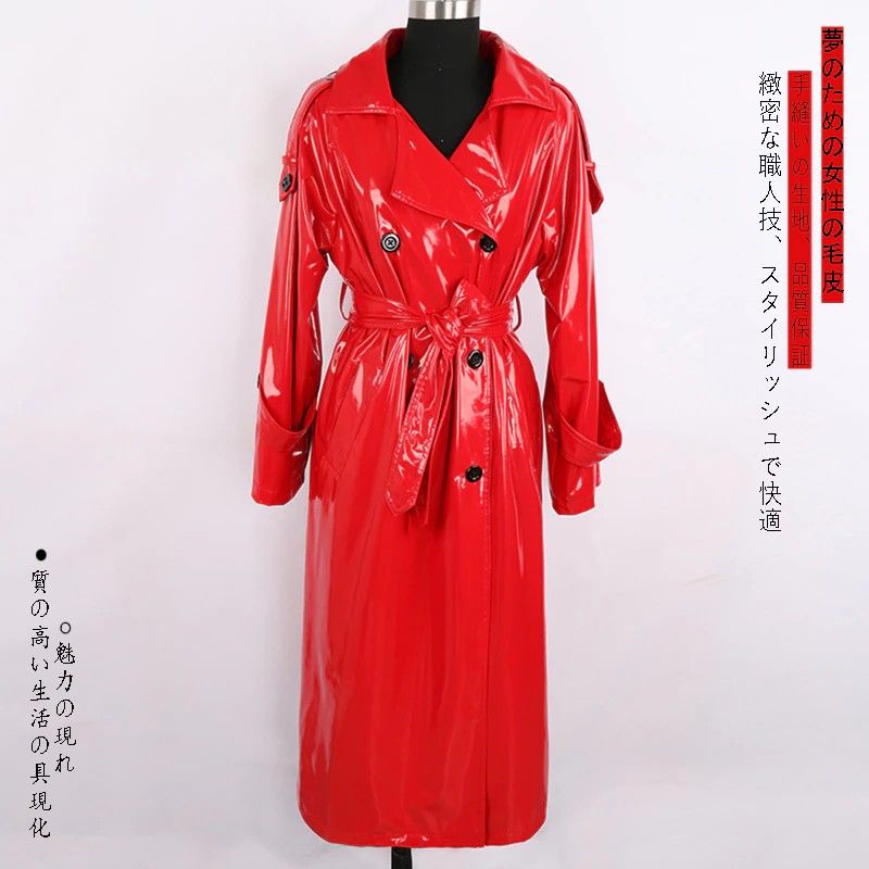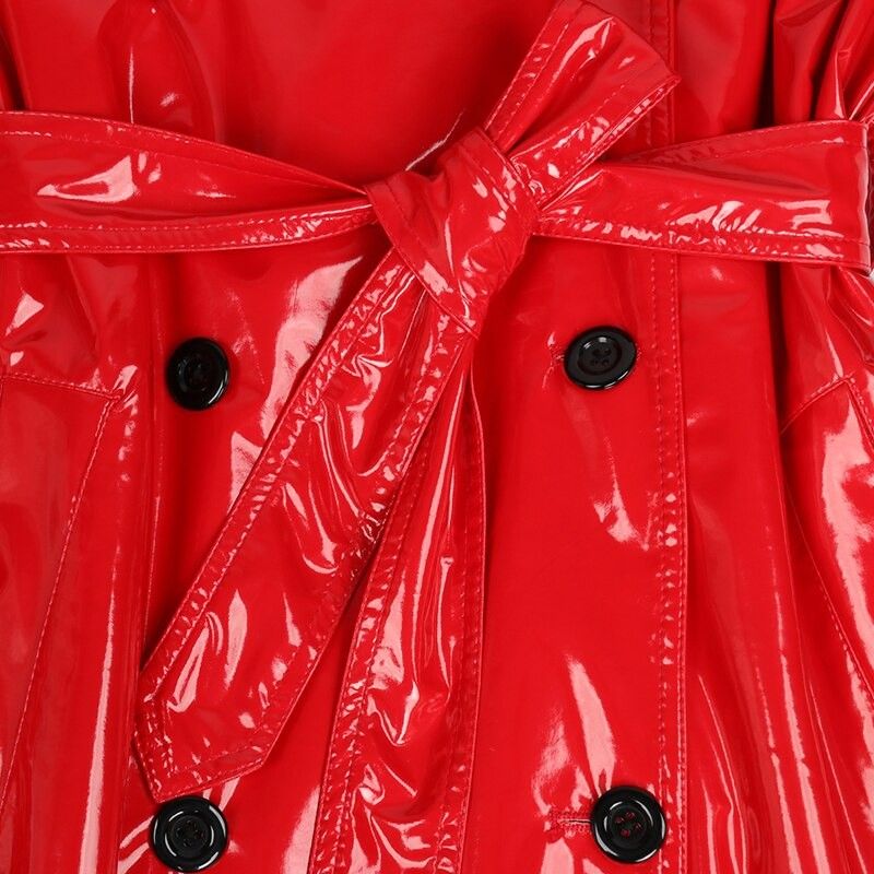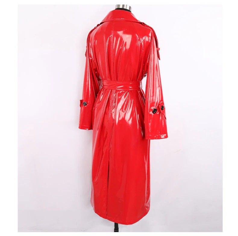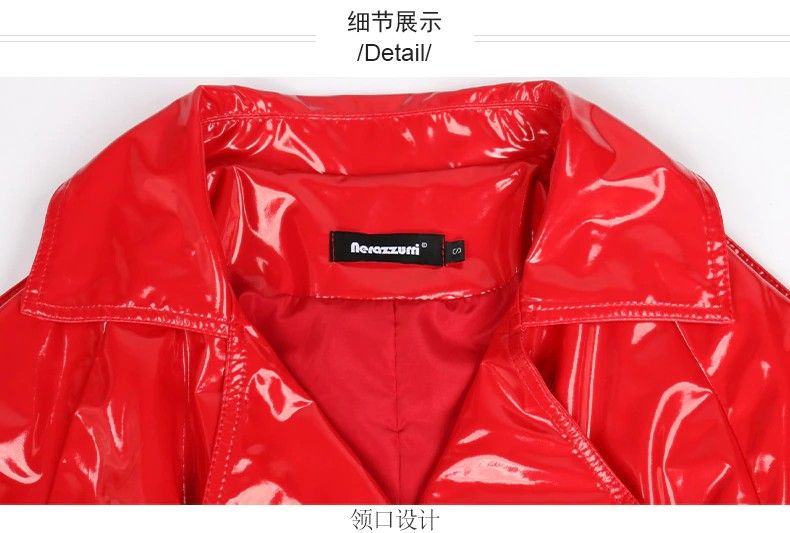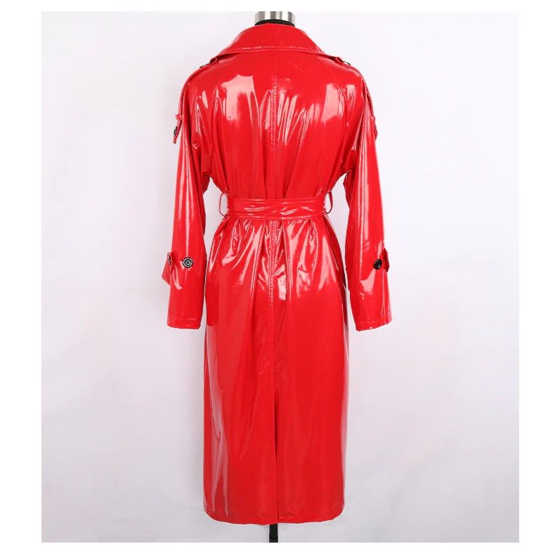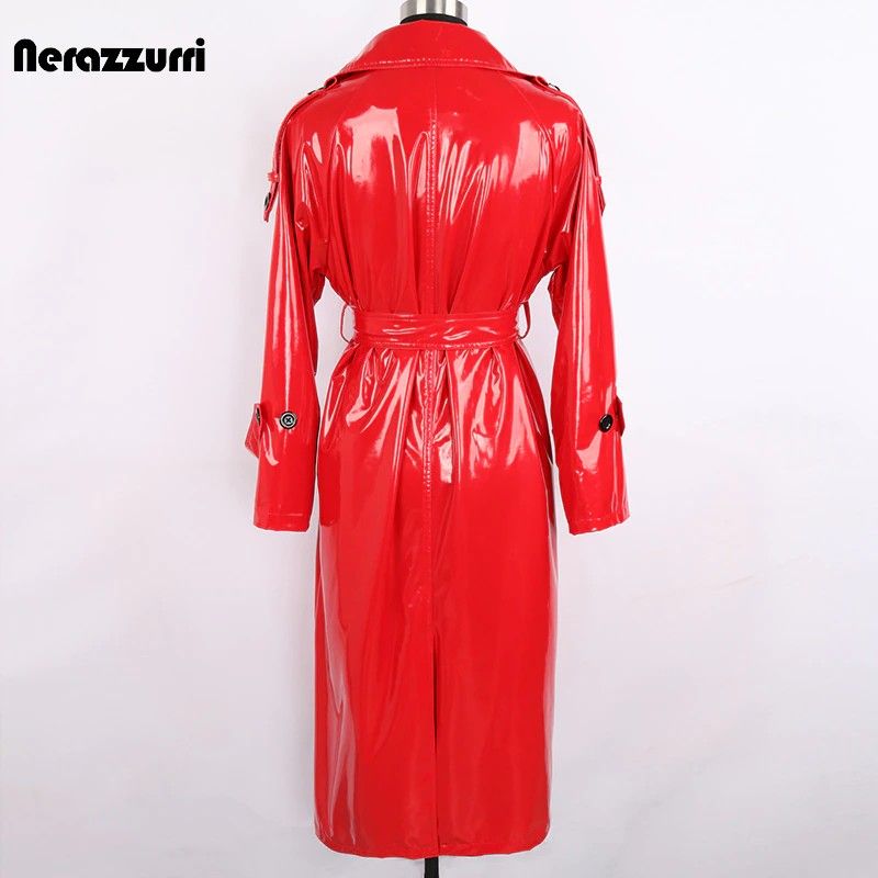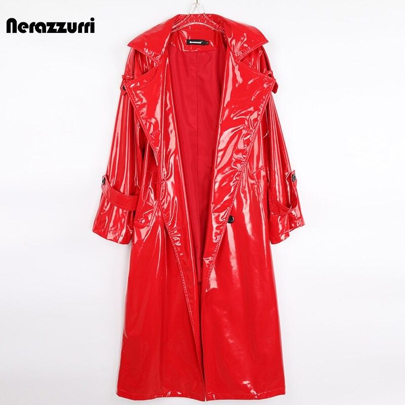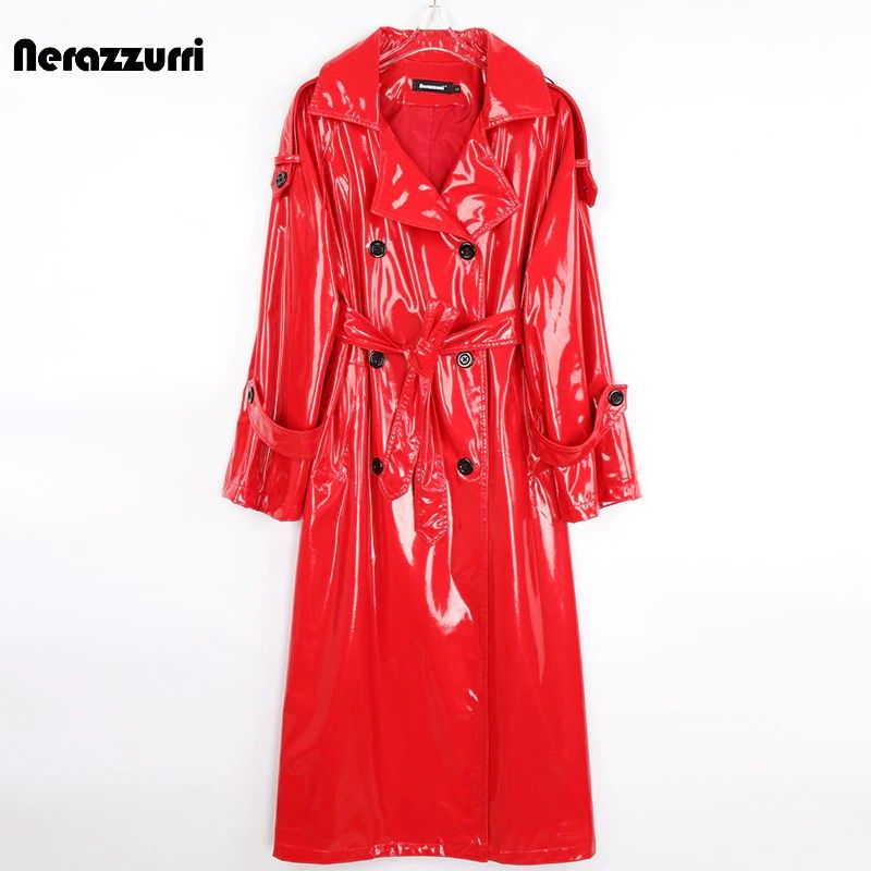 Nerazzurri Herfst Lange Rode Waterdichte Reflecterende Lakleer Trenchcoat Voor Vrouwen Double Breasted Plus Size Fashion 5Xl 6Xl