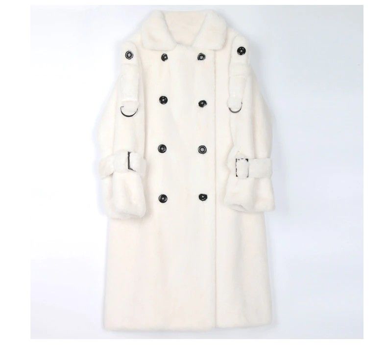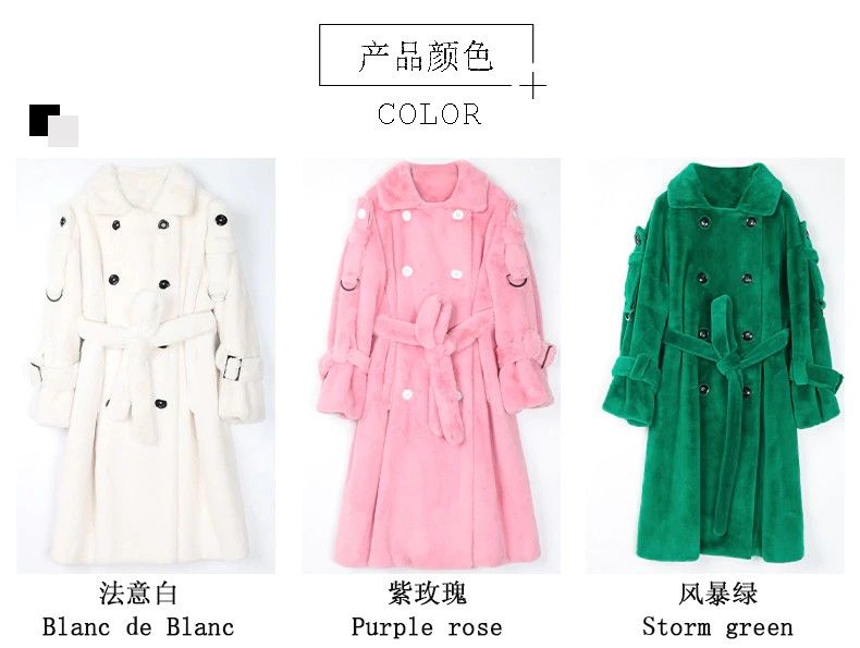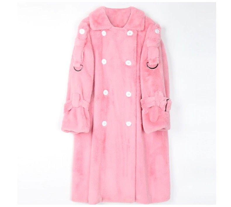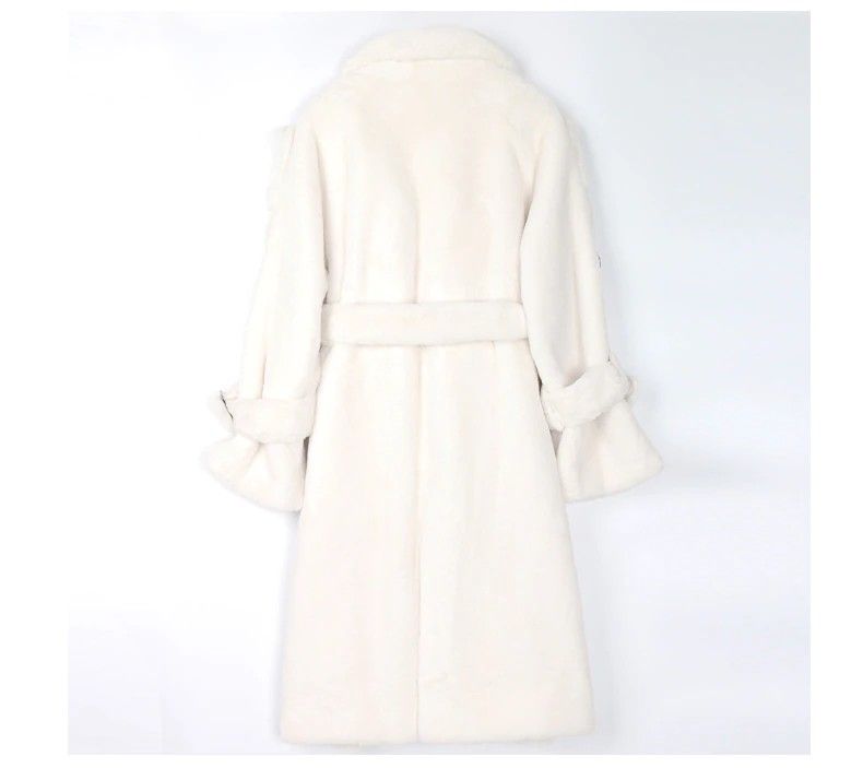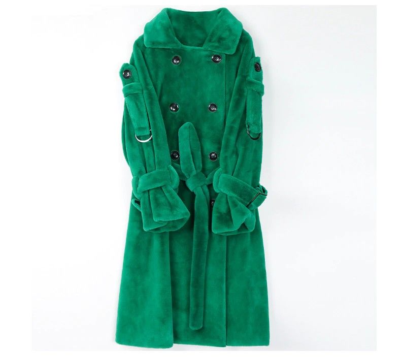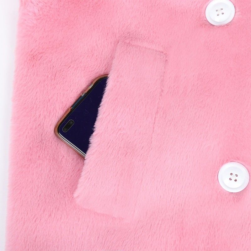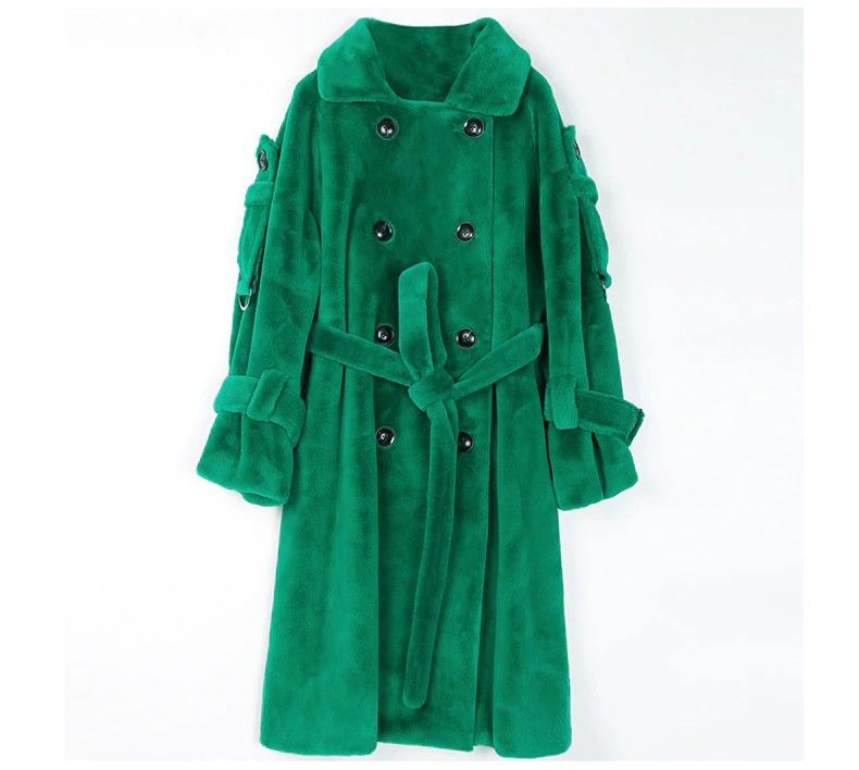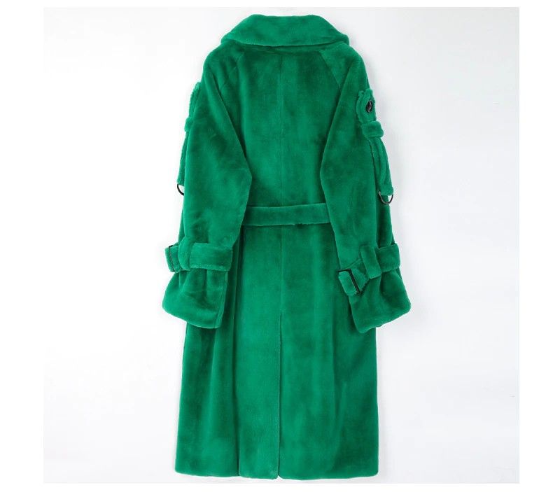 Nerazzurri Lange Warme Pluizige Faux Fur Trenchcoat Voor Vrouwen Laatste Double Breasted Roze Wit Groen Plus Size Winter Mode Riem