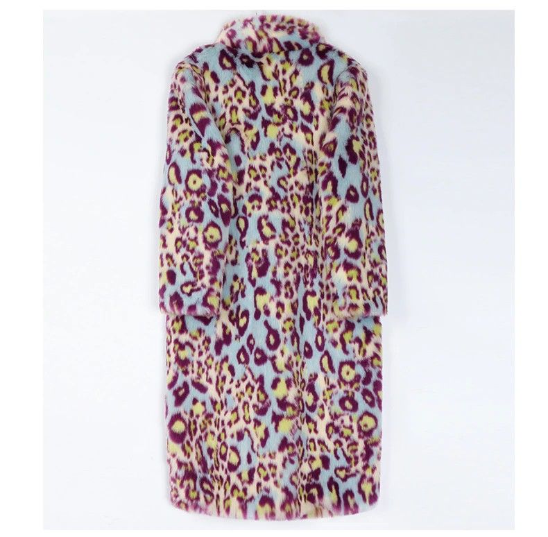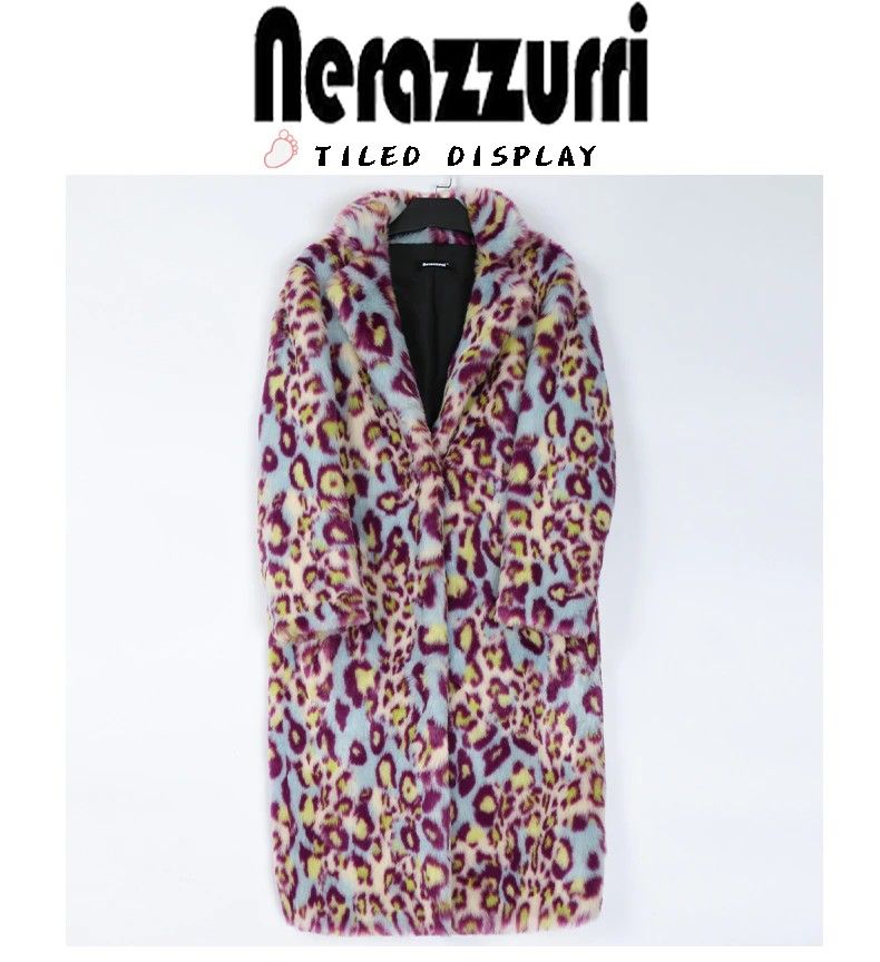 Nerazzurri Veelkleurig Lange Luipaard Print Faux Bontjas Vrouwen Revers Warm Womens Plus Size Mode Winter Kleding Laatste 6Xl 7Xl