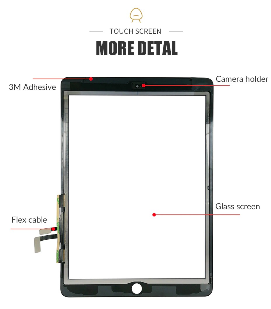 Touch Panel Assembly: Flex-kabel + lijm voor iPad Air 1 touchscreen