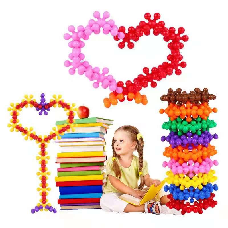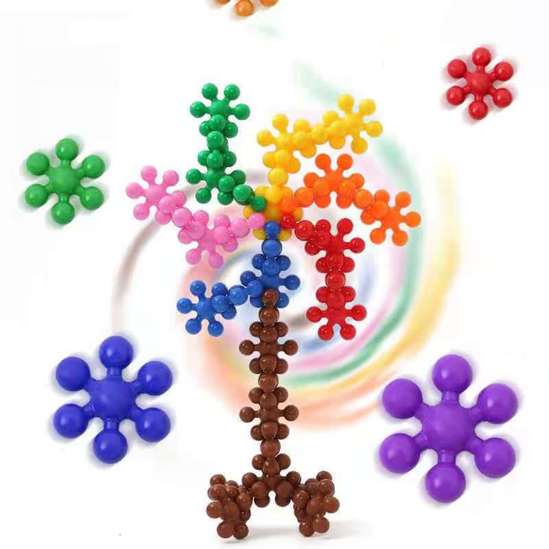 Nieuwe Pruimenbloesem Bouwstenen Bricks 3D Sneeuwvlok Bouwstenen Baby Kids Educatief Speelgoed Diy Grijpende Puzzel Speelgoed
