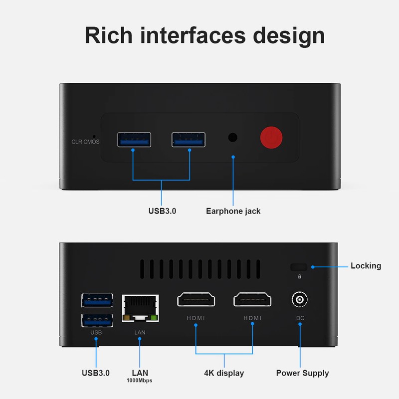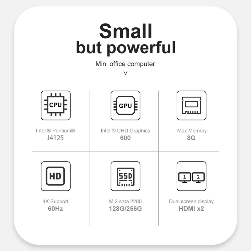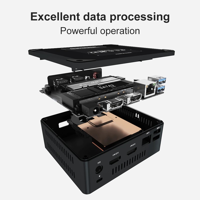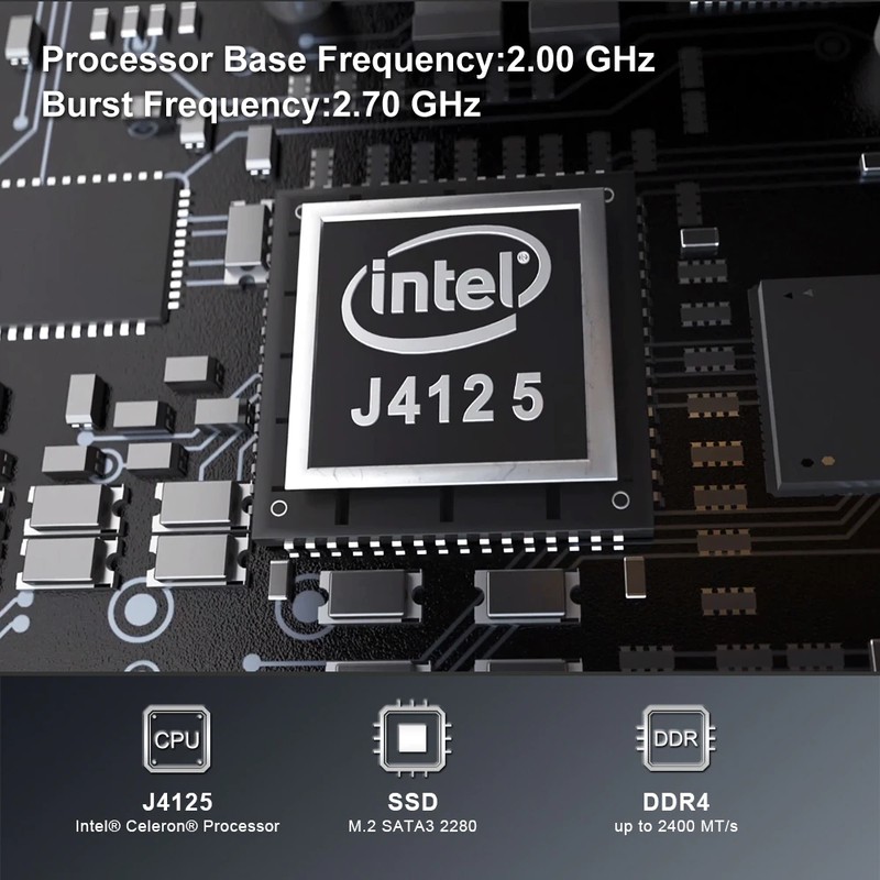 Uitgerust met Intel J4125 processor, (4C/4T, 4M Cache, 2.0GHz tot 2.7GHz), EEN goede configuratie kan de goede werking van de computer.