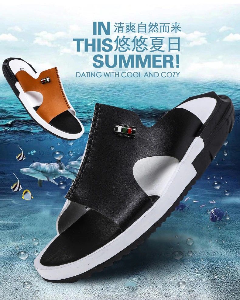 Nieuwste Mannen Zomer Sandalen Originele Lederen Comfortabele Slip-On Casual Sandalen Mode Mannen Slippers Zapatillas Man Maat 38-46