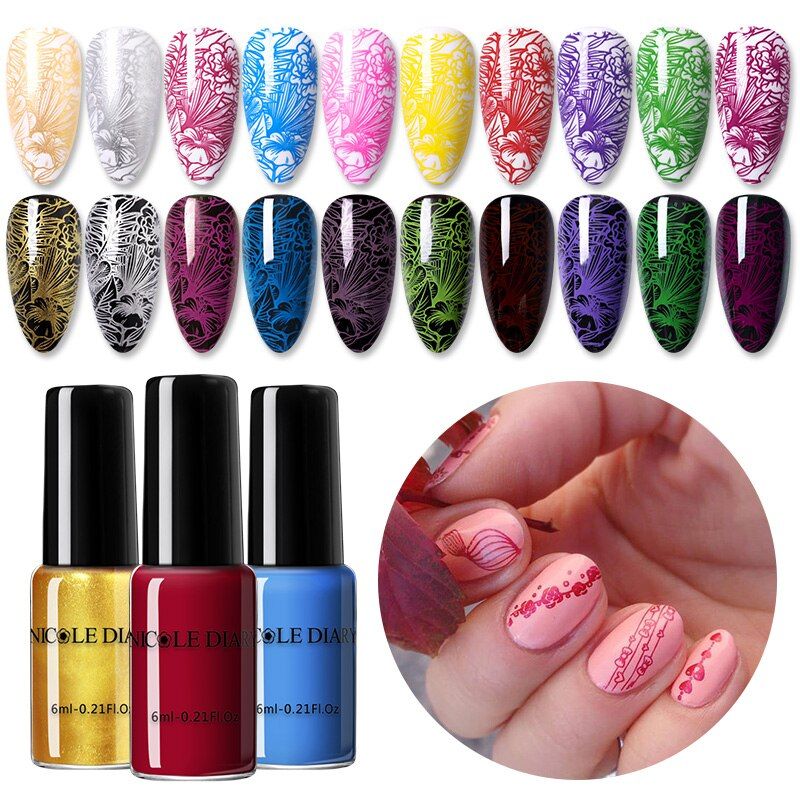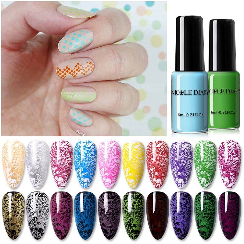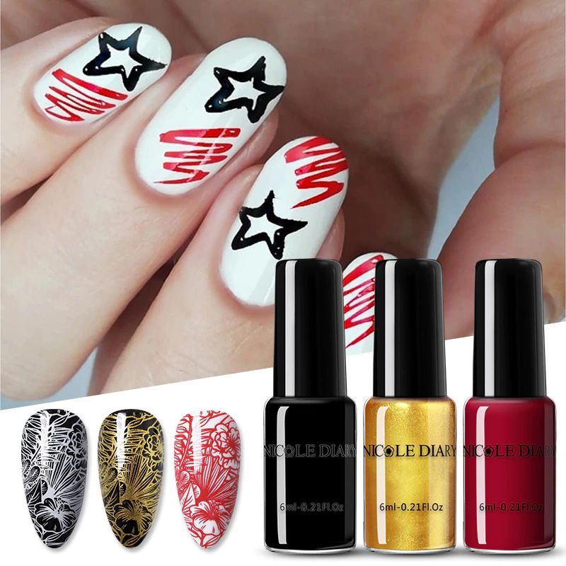 Nicole Dagboek Stempelen Nagellak Zwart Wit Goud Zilver Nail Art Printing Varnish Diy Ontwerp Voor Stempelen Plaat Nagels Lakken