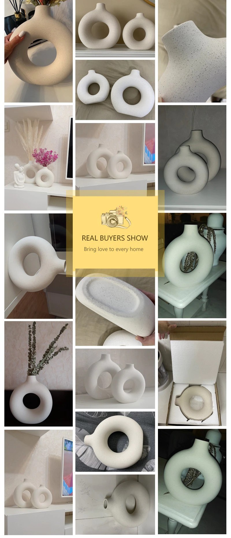 Nordic Circulaire Holle Keramische Vaas Donuts Bloempot Woondecoratie Accessoires Office Desktop Woonkamer Interieur Decor Gift