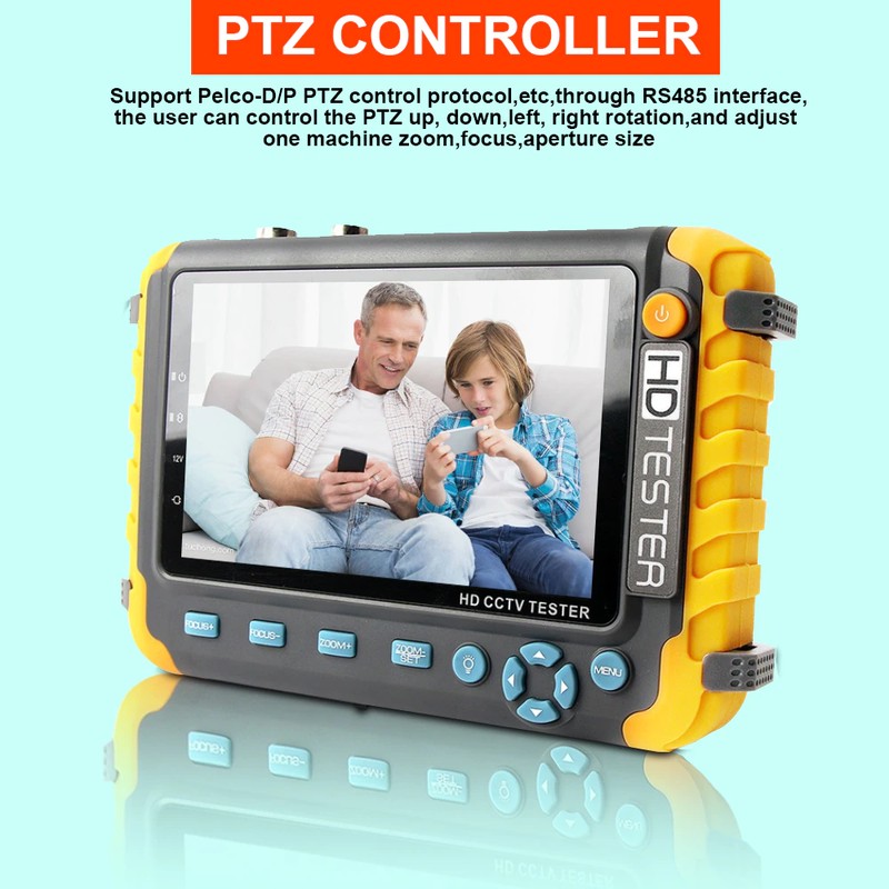 PTZ controller: Video monitor tester ingebouwde Pelco-D / P PTZ control protocol,etc. , door zijn eigen RS485 interface, de gebruiker kan de PTZ up, down, links, rechts draaien, en passen een machine zoom, focus, diafragma.