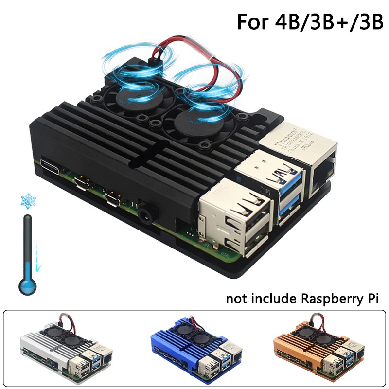 Raspberry Pi Dual Fans CNC Aluminium Case 4 Kleur Shell met Koellichamen compatibel Raspberry Pi 4 Model B/3B +/3B