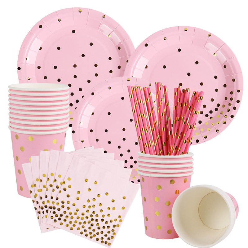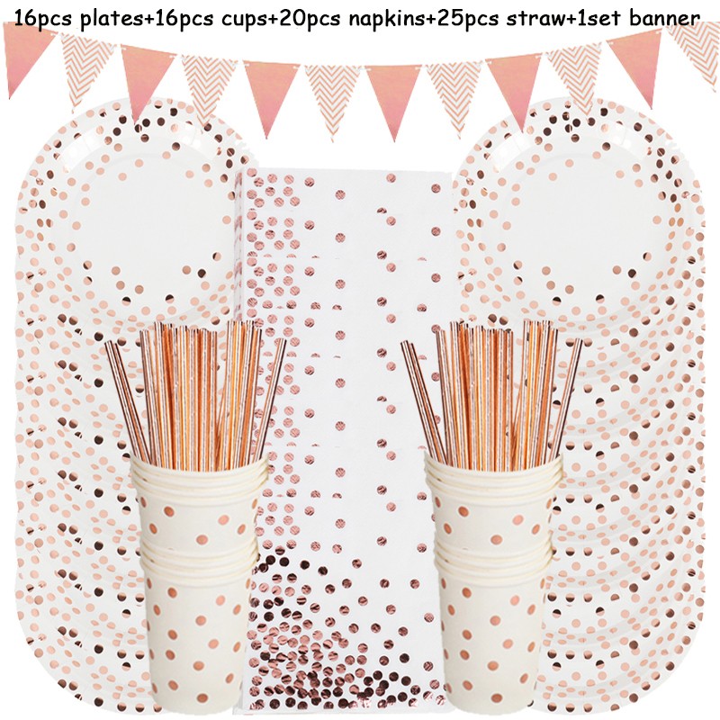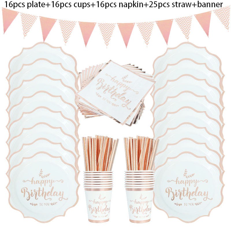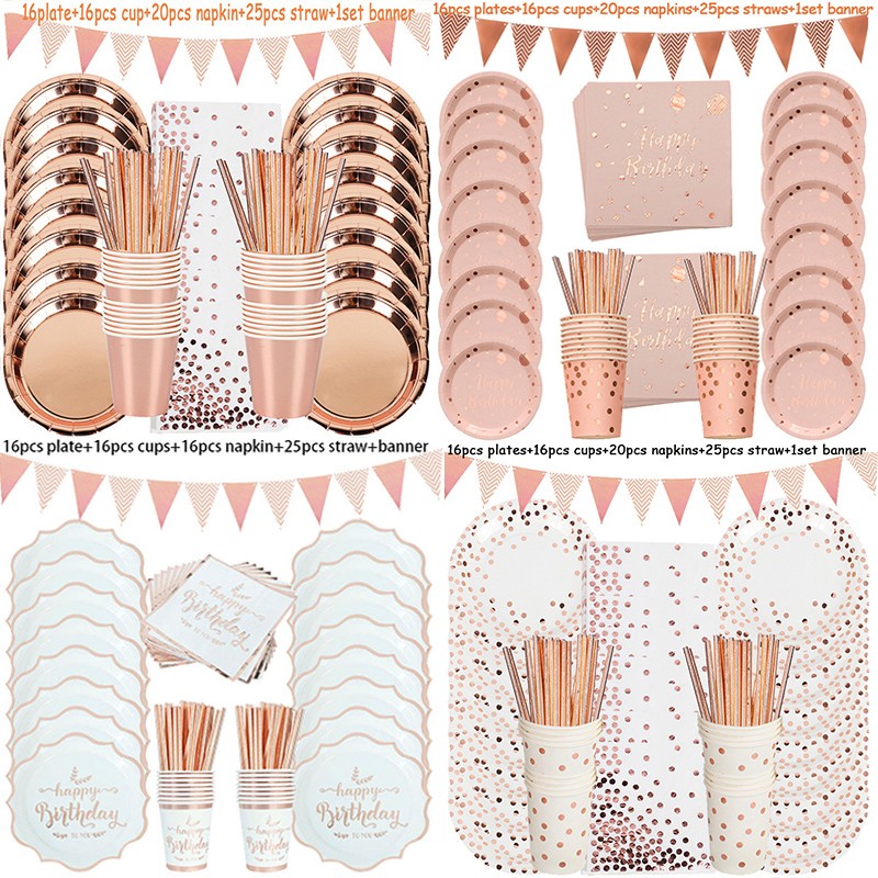Rose Gouden Verjaardag Decoraties Wegwerp Servies Set Papier Cup Volwassen Bruiloft Verjaardagsfeestje Decoraties Kids Babyshower Meisje