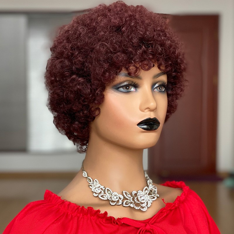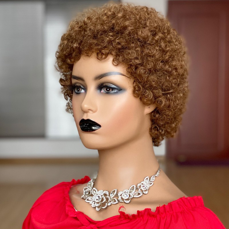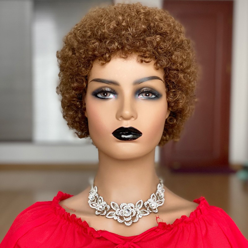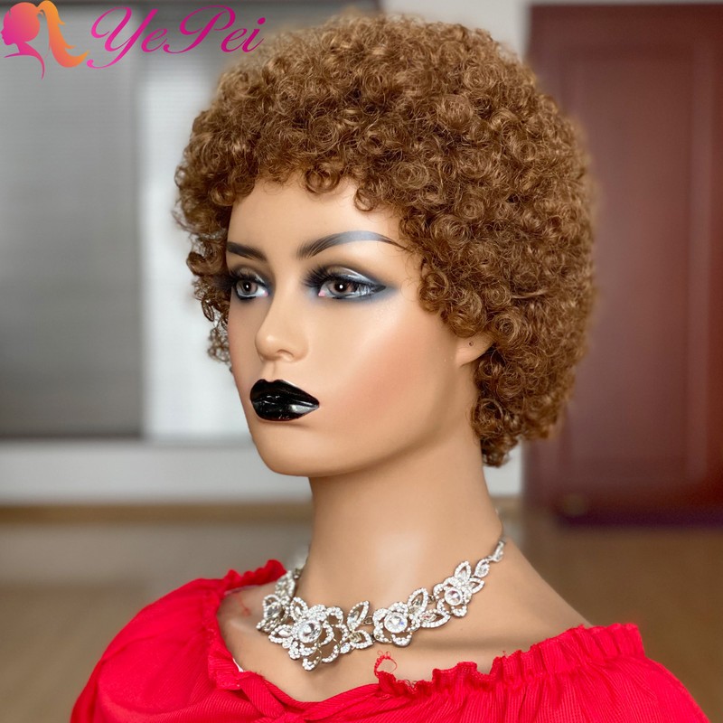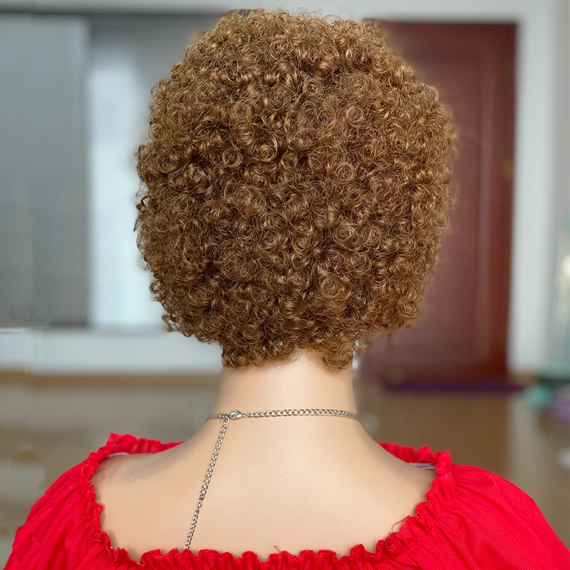 Korte Afro Kinky Krullend Pruik Pixie Cut Pruiken Braziliaanse Remy Haar Afro Bladerdeeg Menselijk Haar Pruiken Voor Vrouwen Volledige Mahine Gemaakt Pruiken