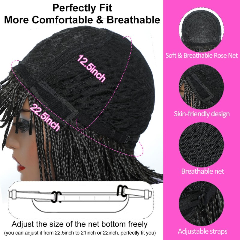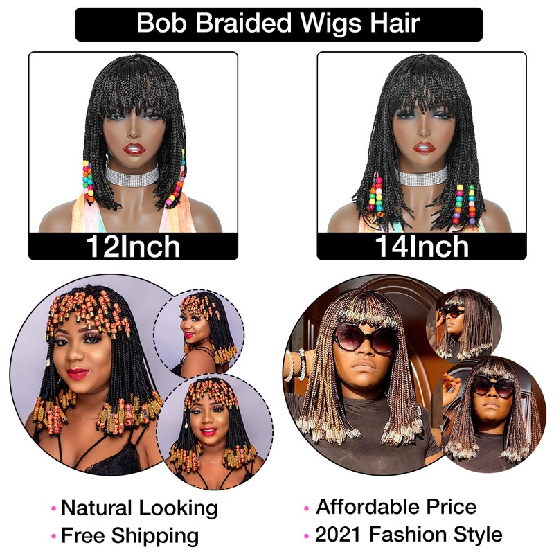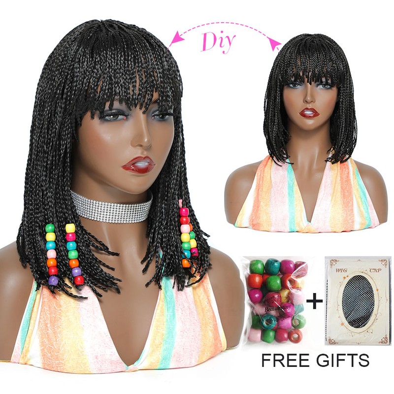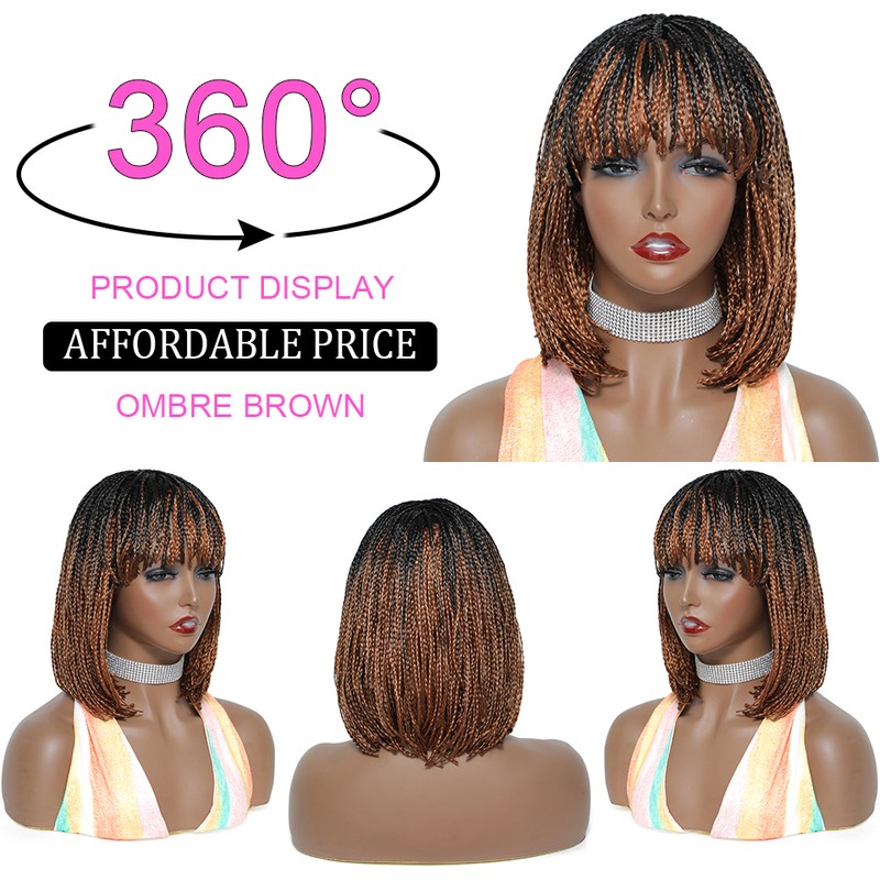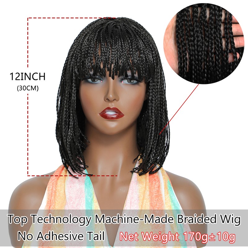 Korte Gevlochten Pruiken Voor Zwarte Vrouwen Hittebestendige Haak Doos Gevlochten Bob Pruik Met Pony Afrikaanse Synthetische Vlechten Haar Pruik Bob