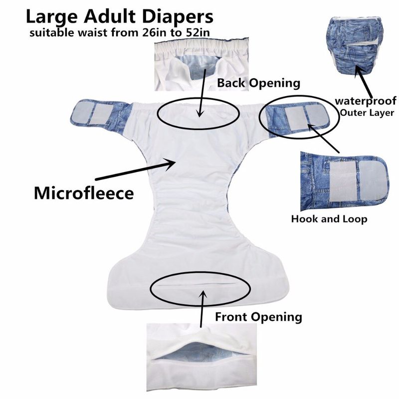 [Sigzagor]1 Xl Volwassen Doek Luier Nappy Urine-Incontinentie Pocket Herbruikbare Invoegen Klittenband Abdl Leeftijd Spelen 26.7In Over 50.4In