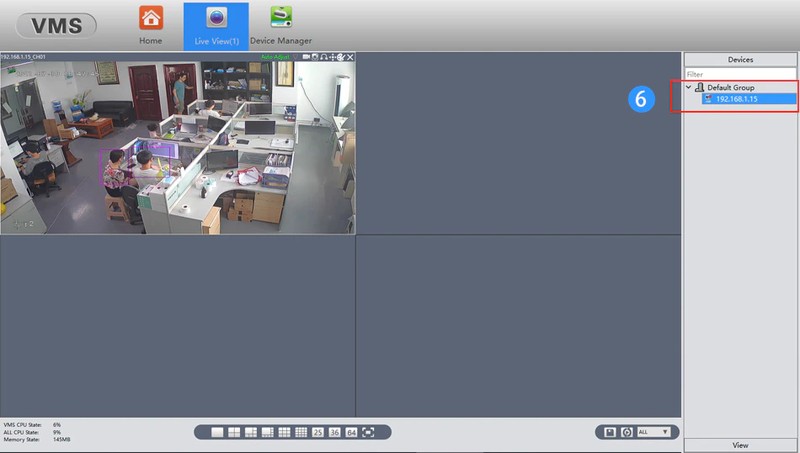 4. klik t hij Live View, dan klik IP Adres van Standaard Groep, dan zal je kan Kijken Video.