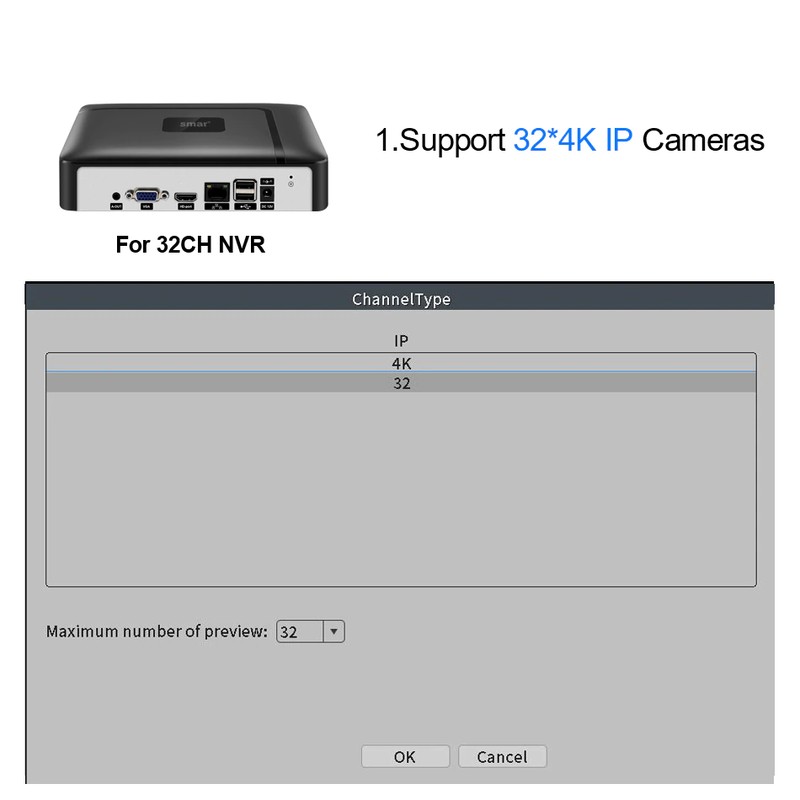 2. Max ondersteuning 32*4K(8MP) IP Camera