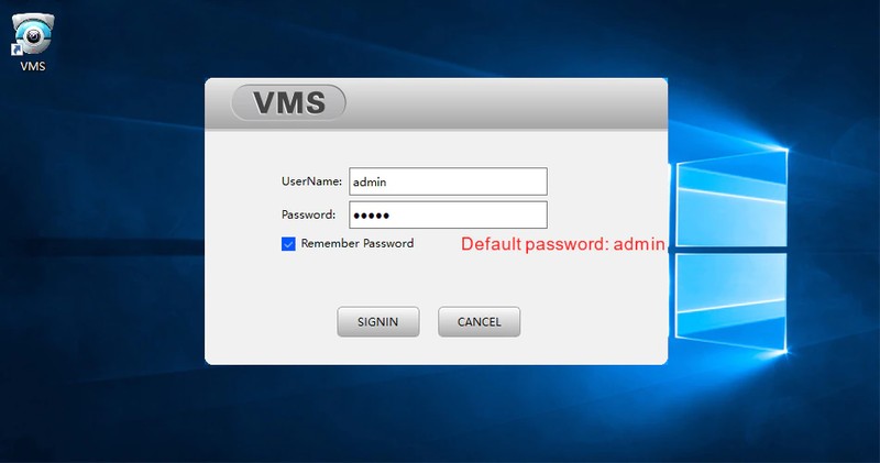 2. installeer VMS software op uw computer, dan login VMS Software, Gebruikersnaam: admin, Wachtwoord: admin