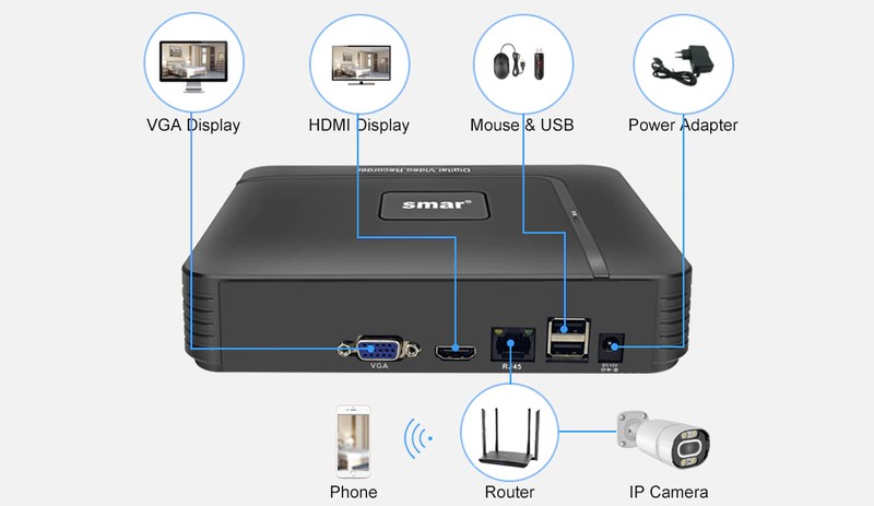 Smar's Video Recorder alle ondersteuning ONVIF en NETIP Protocol;