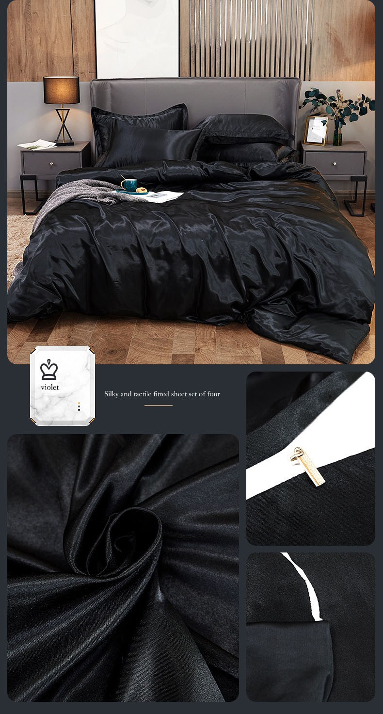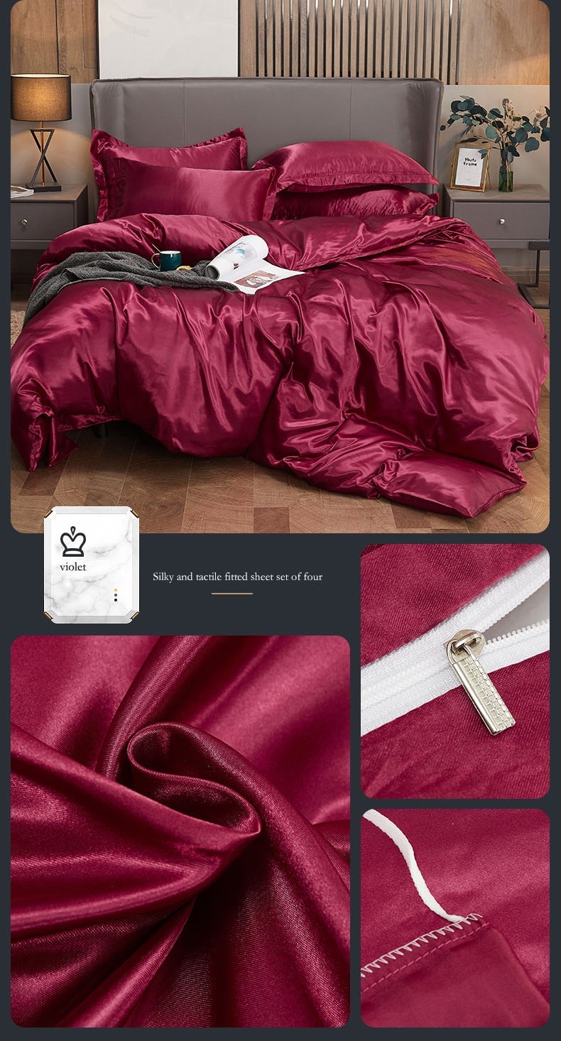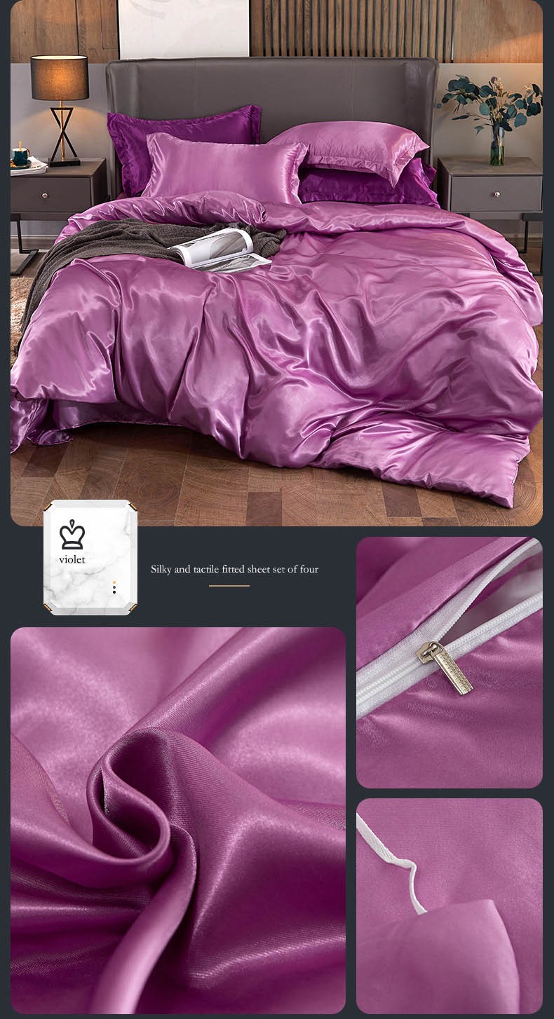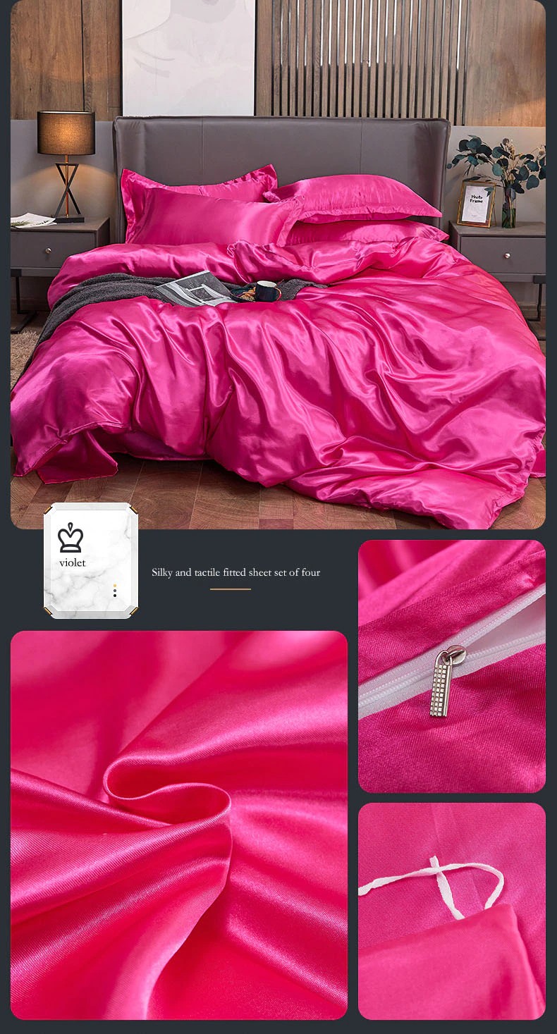 Effen Kleur Satijn Gewassen Imitatie Zijde Beddengoed Set Dekbed Dekbedovertrek Sets King Size Met Kussensloop Dubbele Koningin Beddengoed