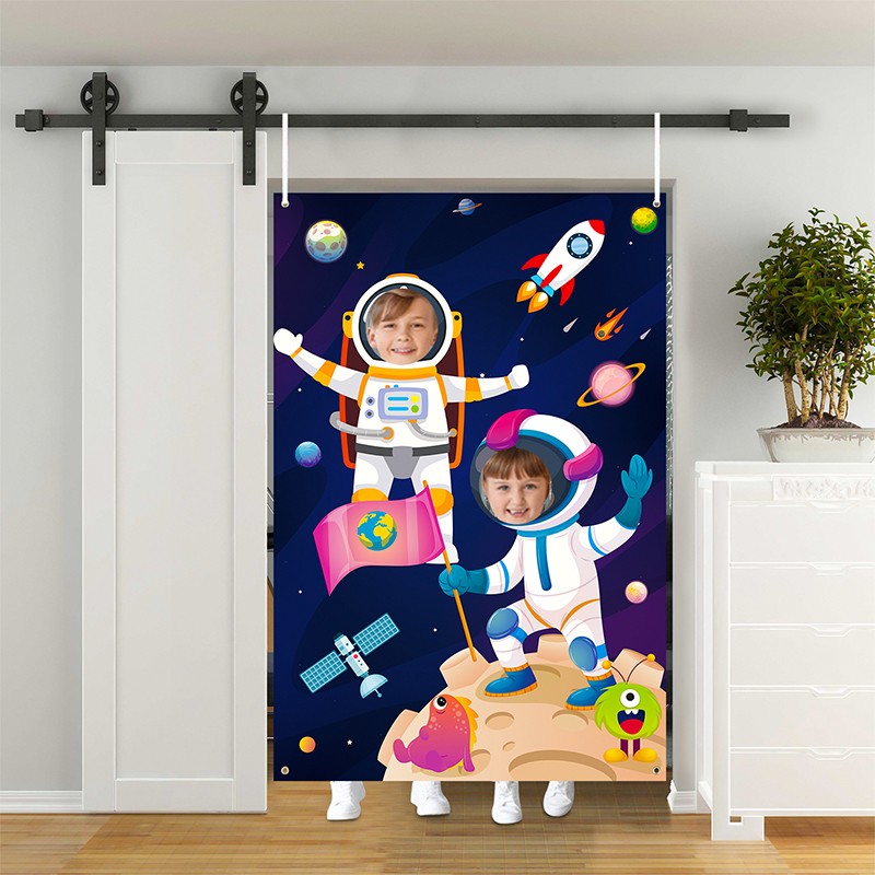 Ruimte Foto Achtergrond Rekwisieten Banner Astronaut Gezicht Fotografie Achtergrond Universe Thema Pretend Play Party Game Levert Voor Kinderen