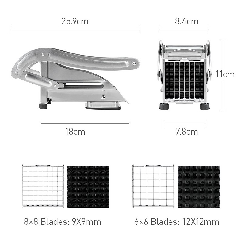 Goed, krijgen deze grade roestvrijstalen aardappelen cutter! Geen behoefte te besteden lange tijd om aardappelen, dit product kan u helpen snijden aardappelen in een tweede. Het geeft je gesneden aardappel dat is veel kleiner dan je kon krijgen door hand hakken. Gemaakt van roestvrij staal, duurzaam, nooit roest en goed voor uw gezondheid.