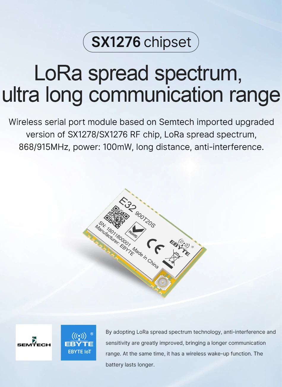Sx1276 868Mhz 100Mw Smd Draadloze Transceiver Cdsenet E32-900T20S 915Mhz Ttl 5000M Long Range Lora Ipex Zender En Ontvanger