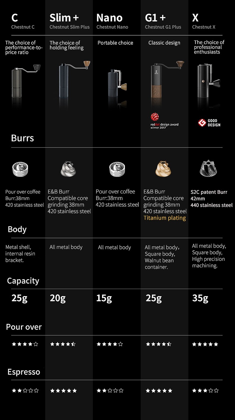The characteristics of Timemore manul burr coffee hand grinder chestnut C2 Update: